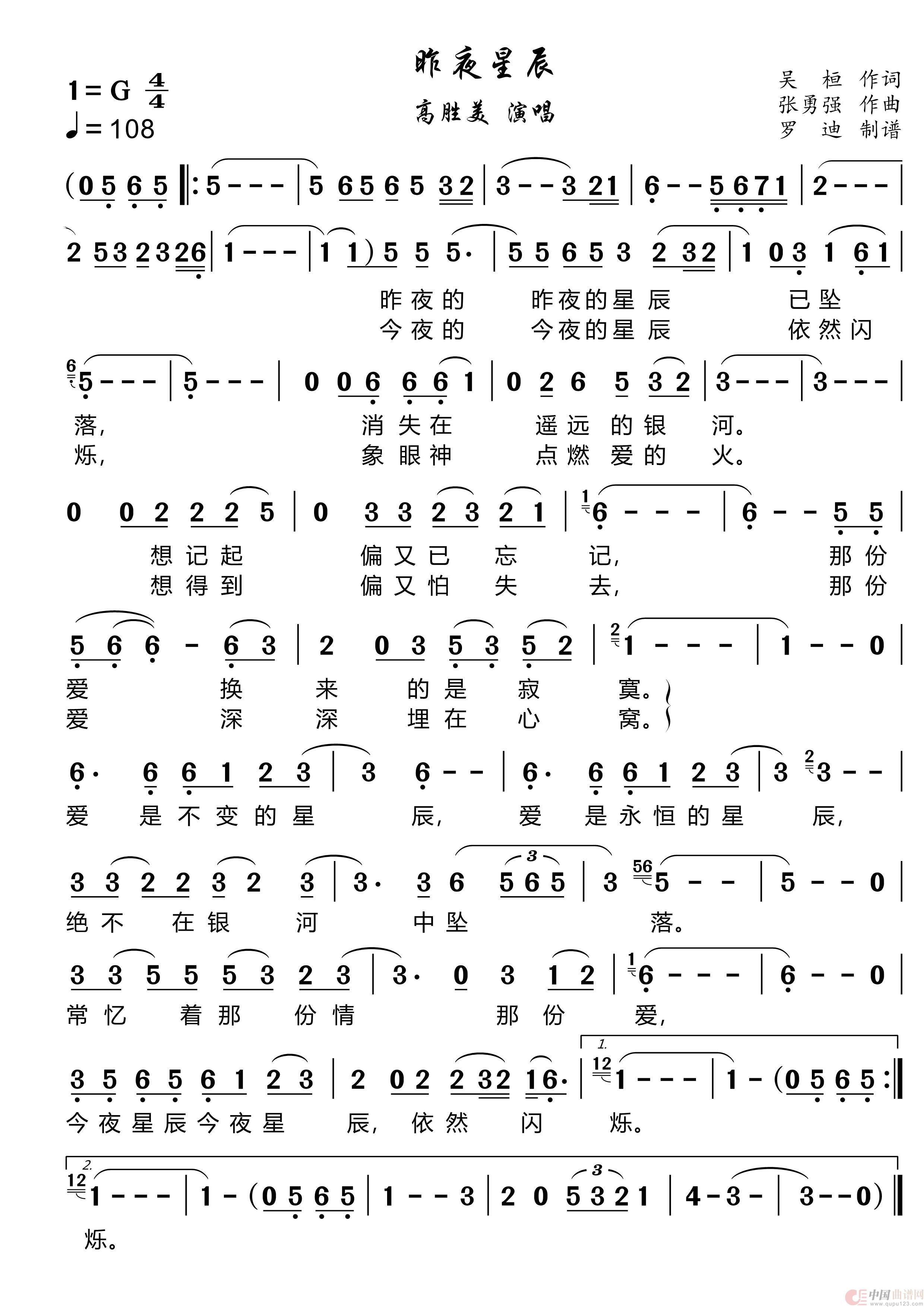 作词:吴桓   作曲:张勇强   演唱(奏):潘美辰   来源:根据潘美辰演唱记谱   上传:罗迪   日期:2024-07-04   浏览次数: