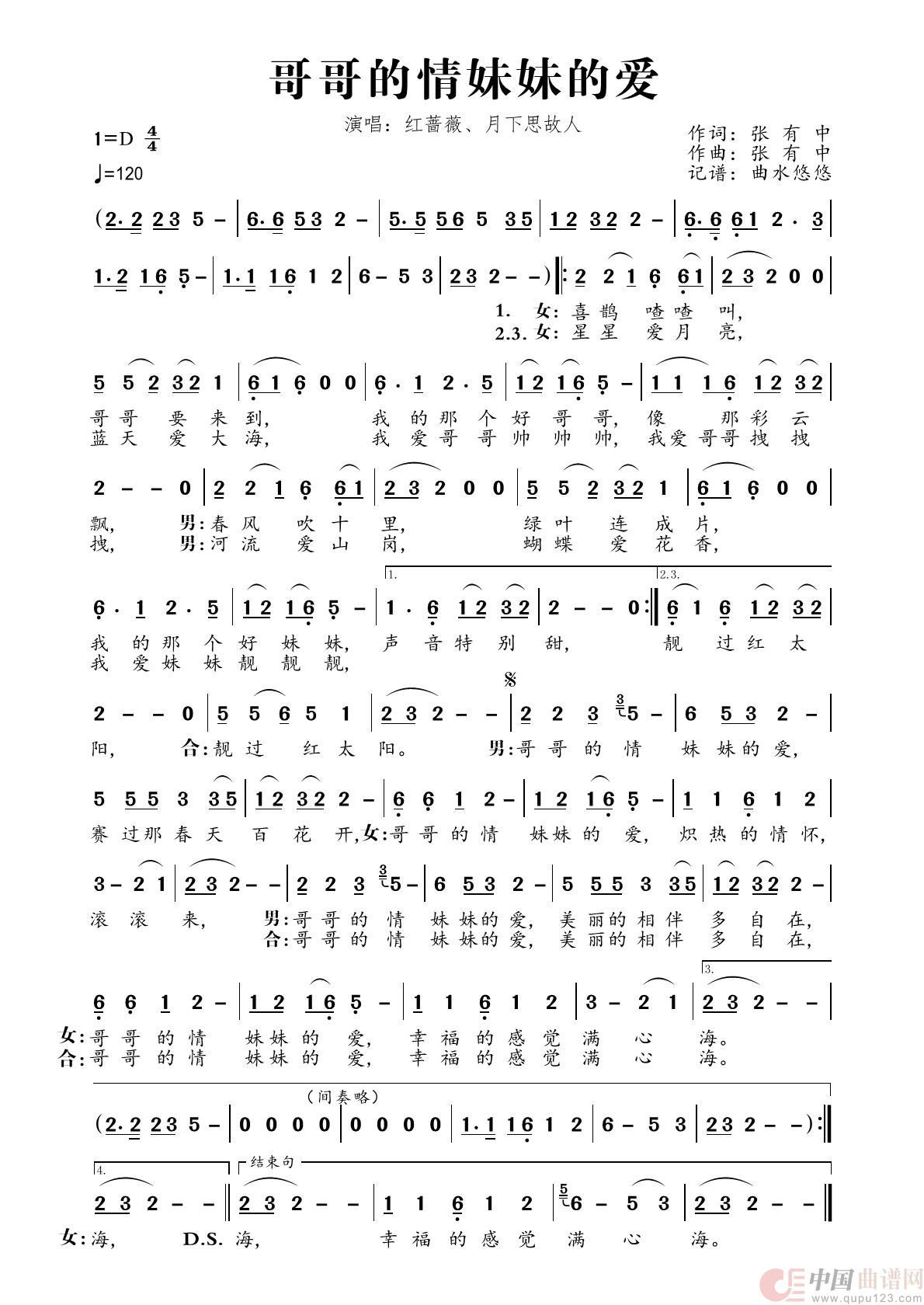 关于《哥哥的情妹妹的爱》曲谱的评论