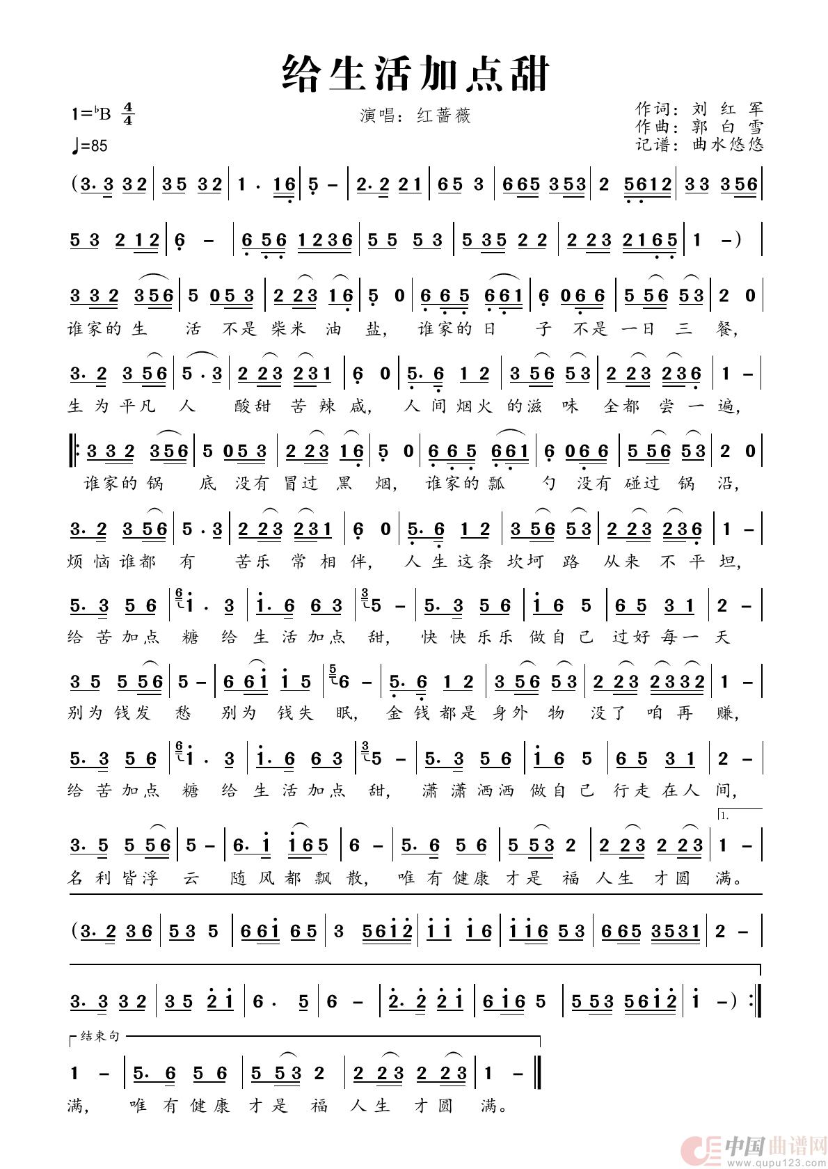 关于《给生活加点甜》曲谱的评论