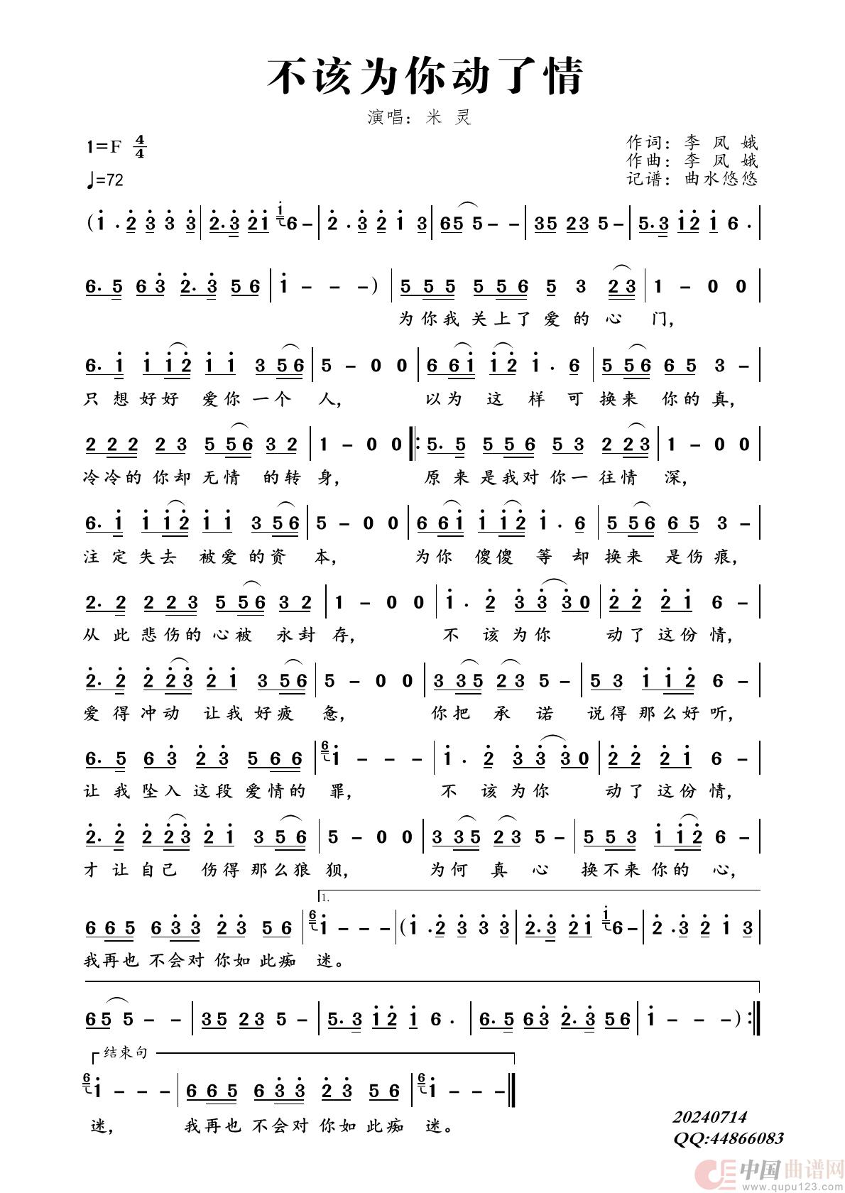 关于《不该为你动了情》曲谱的评论