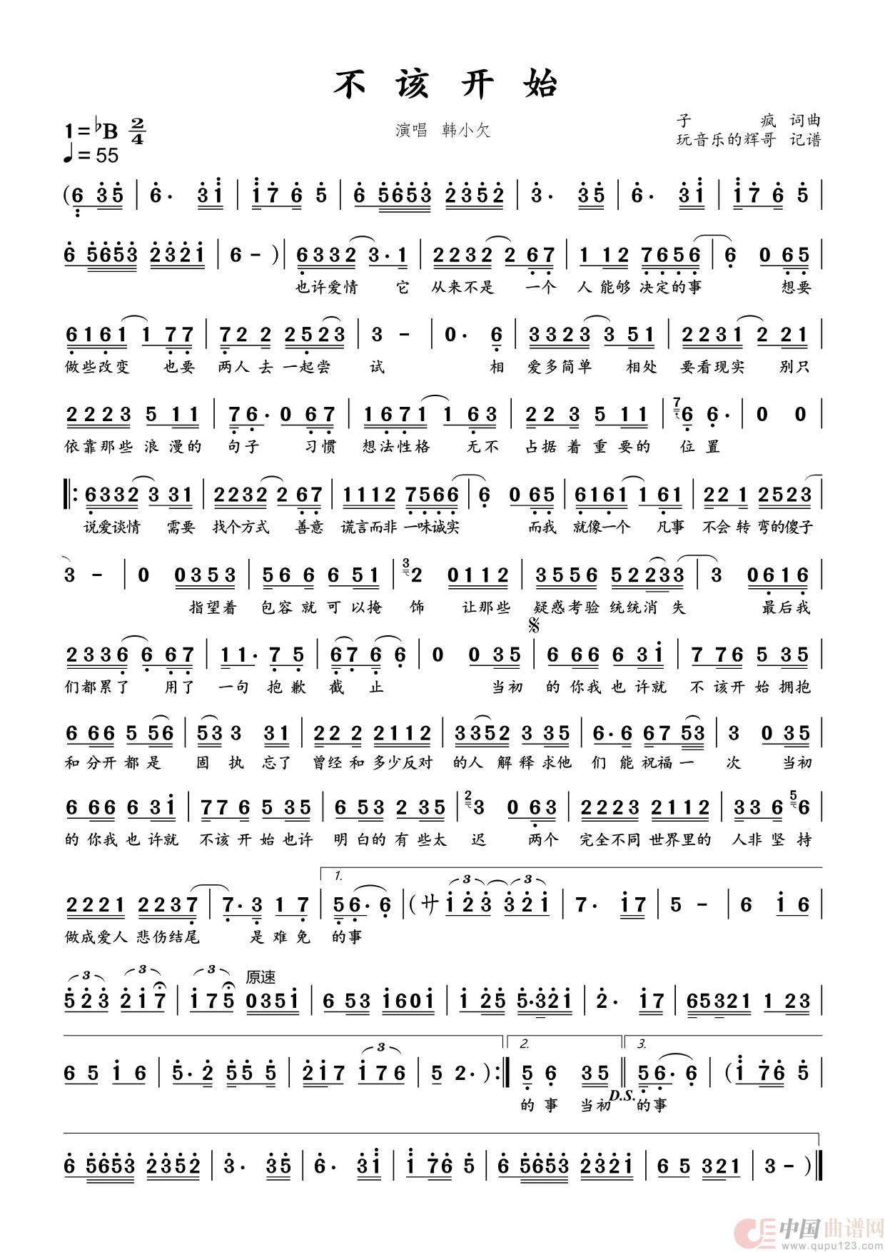 关于《不该开始》曲谱的评论