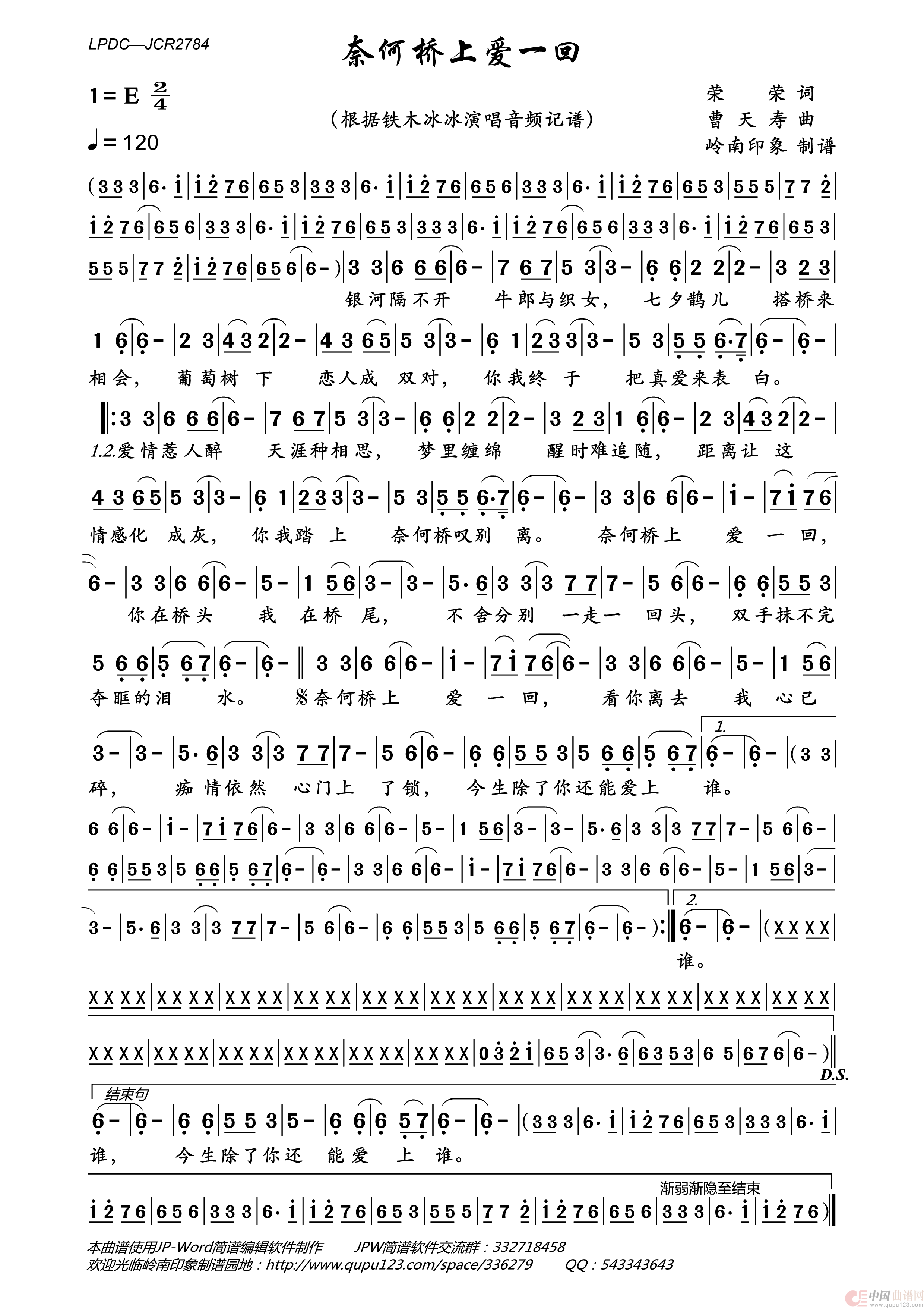 提示:在曲谱图片上单击右键,选择"图片另存为..."即可将曲谱保存到您的电脑中,打印时候可将图片插入到WORD中,调整合适大小打印即可。