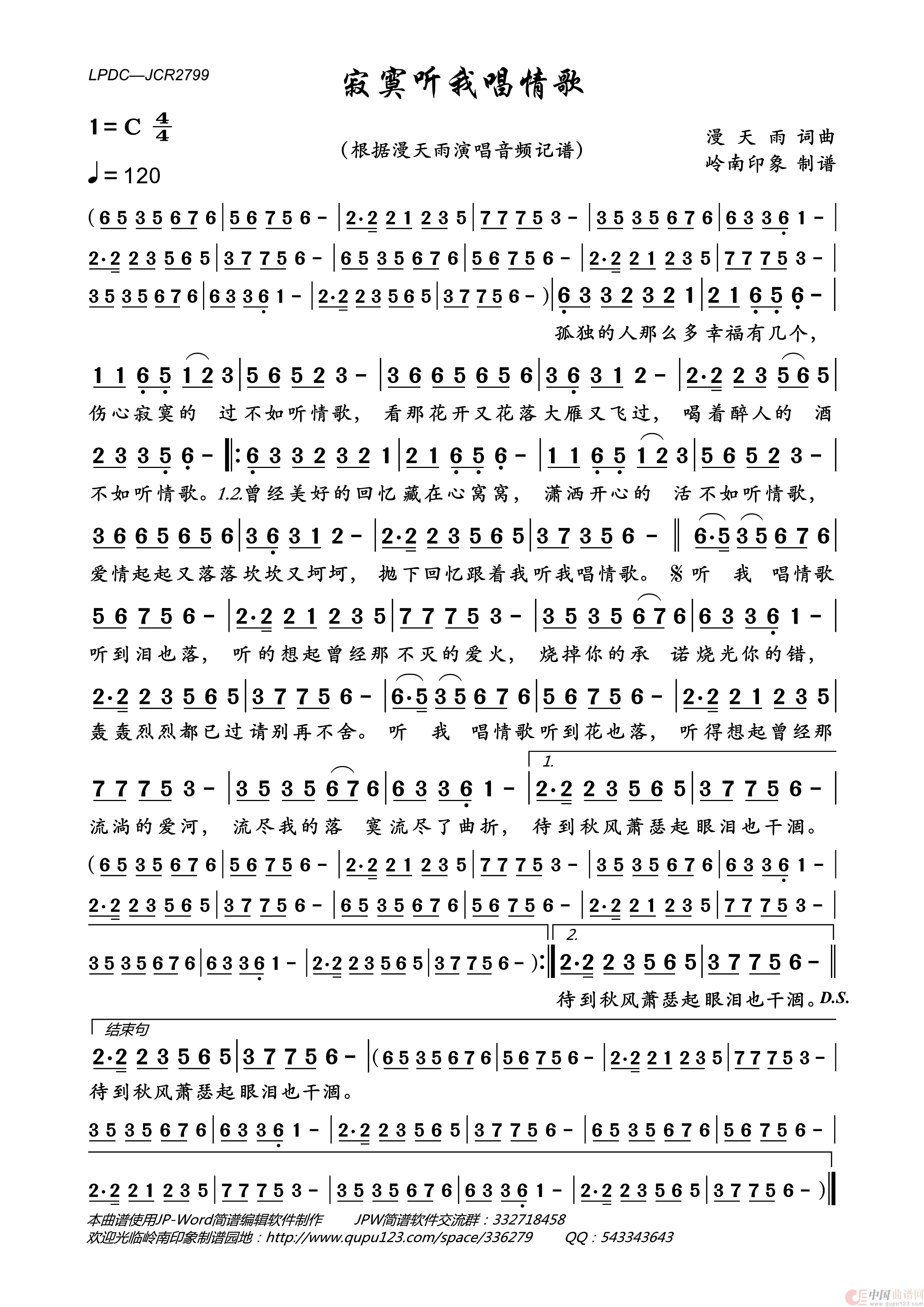 提示:在曲谱图片上单击右键,选择"图片另存为..."即可将曲谱保存到您的电脑中,打印时候可将图片插入到WORD中,调整合适大小打印即可。