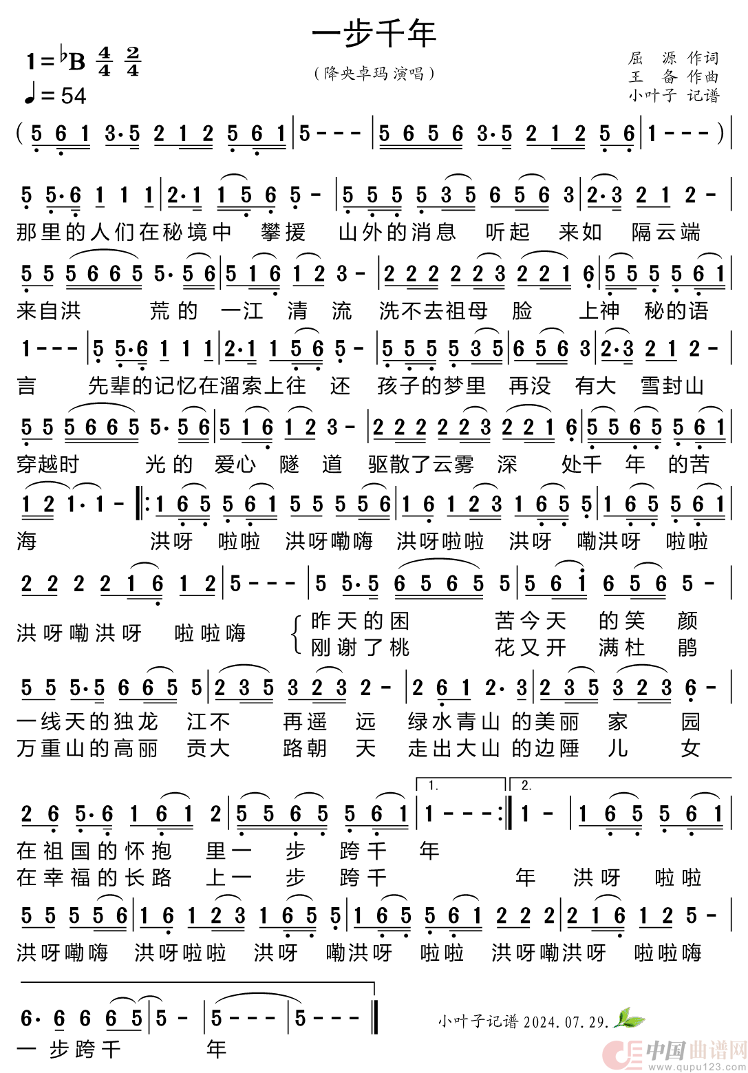 关于《一步千年》曲谱的评论