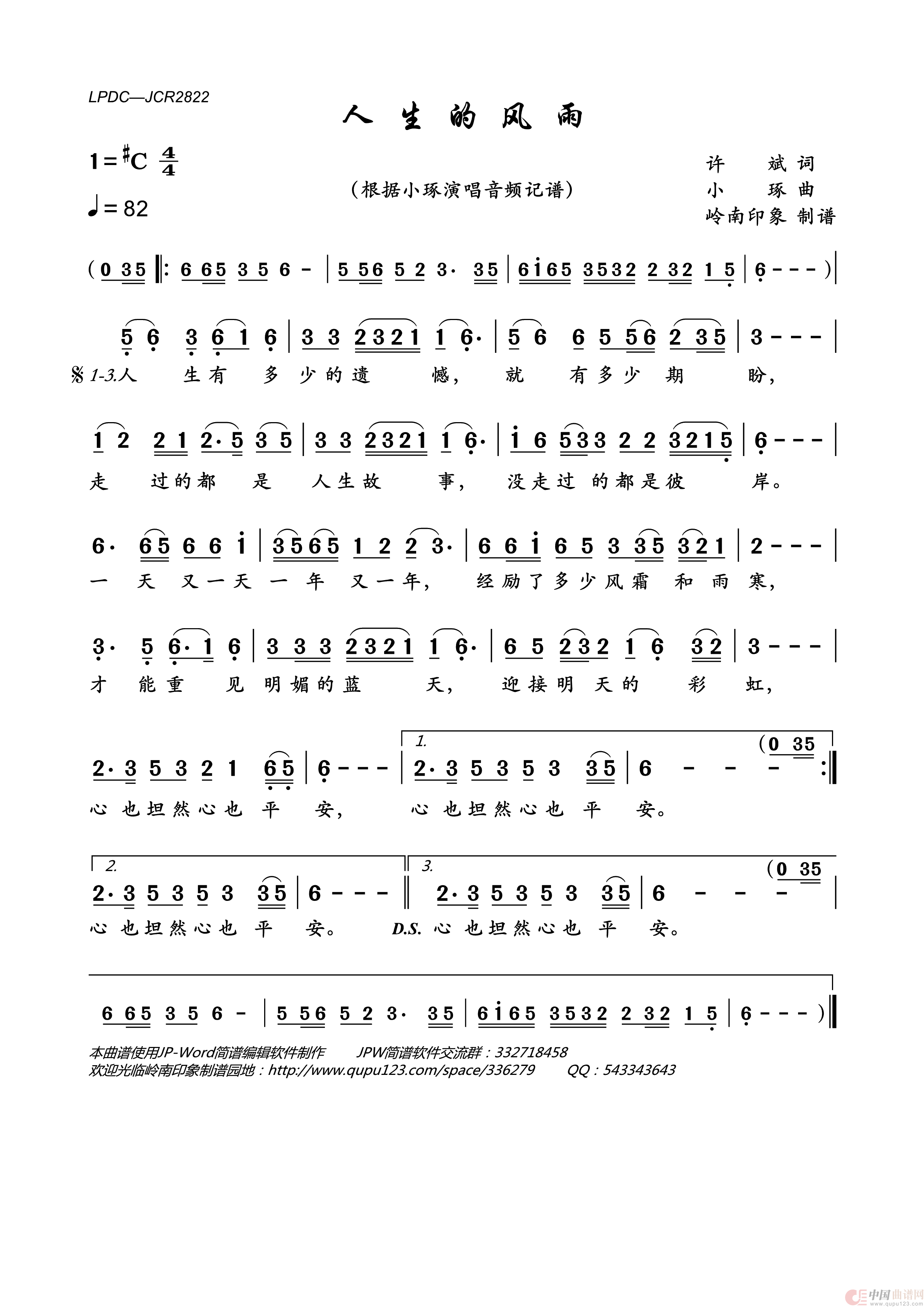 《人生的风雨》文本歌词