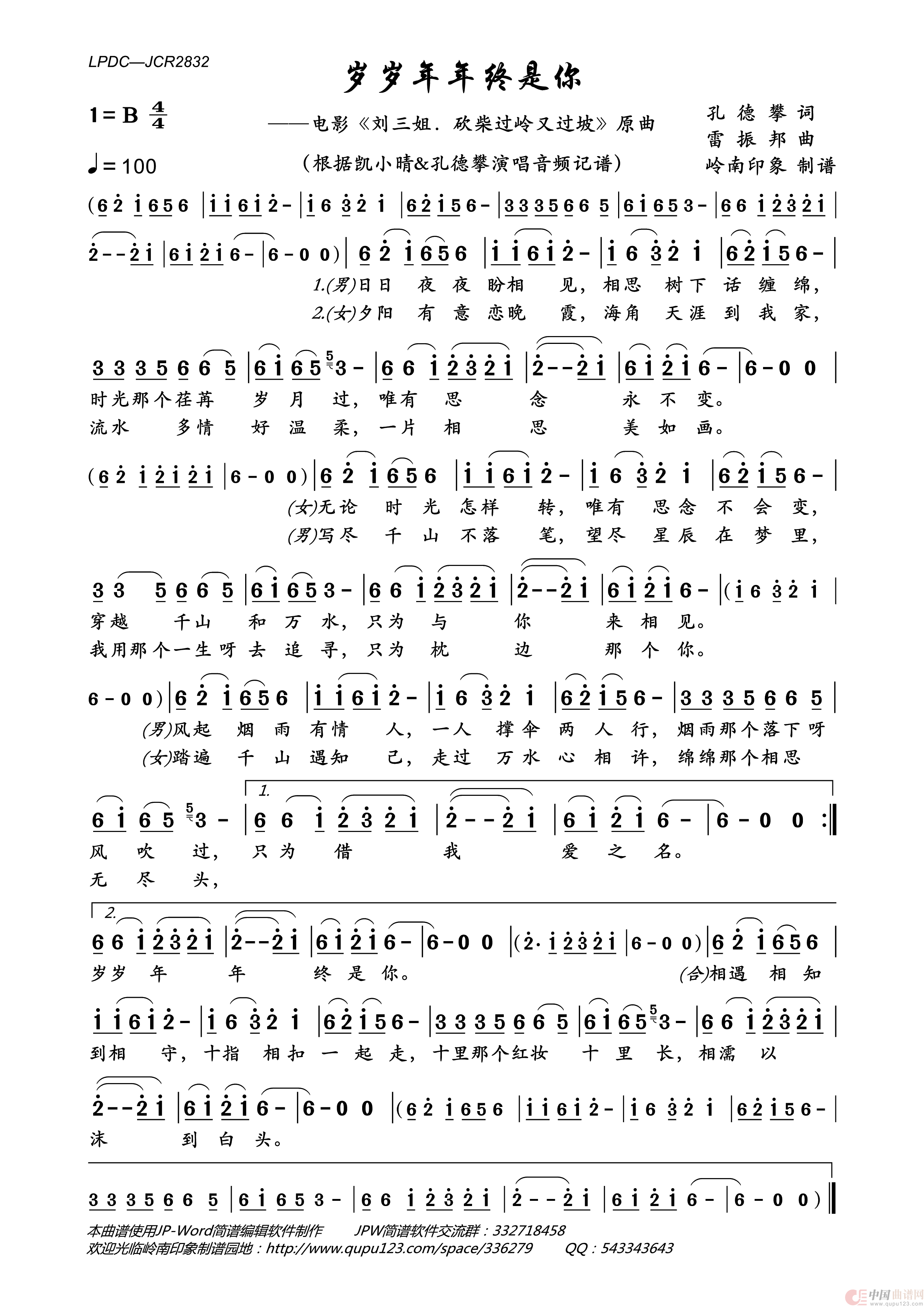 提示:在曲谱图片上单击右键,选择"图片另存为..."即可将曲谱保存到您的电脑中,打印时候可将图片插入到WORD中,调整合适大小打印即可。
