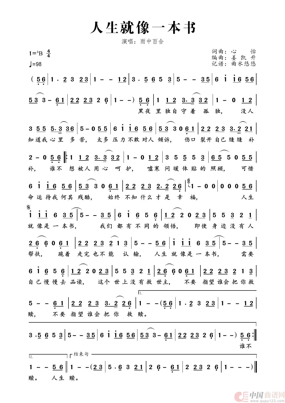 关于《人生就像一本书》曲谱的评论