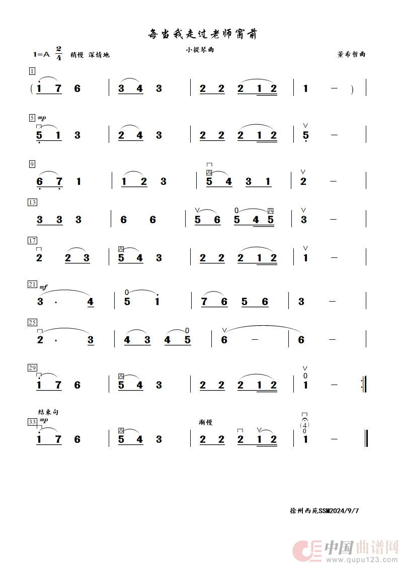 每当我走过老师窗前(小提琴曲(简谱+五线谱))