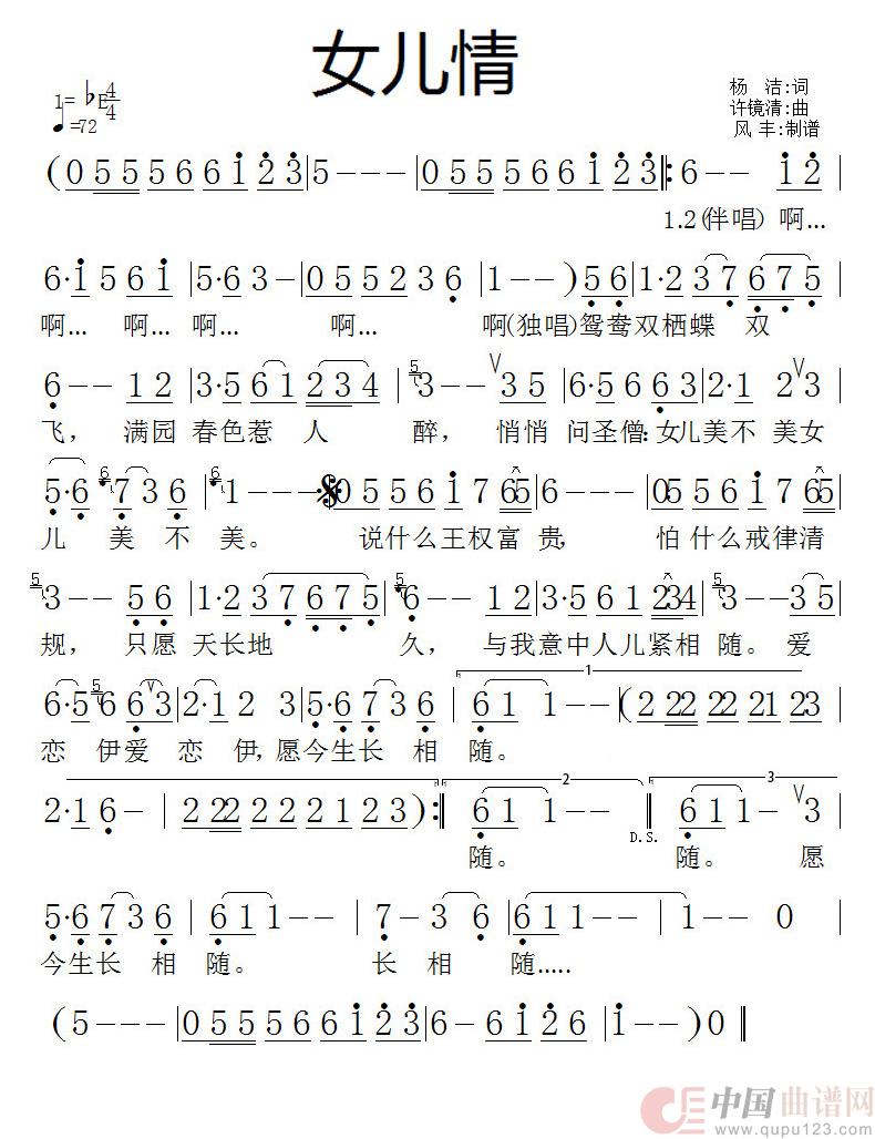 关于《女儿情》曲谱的评论