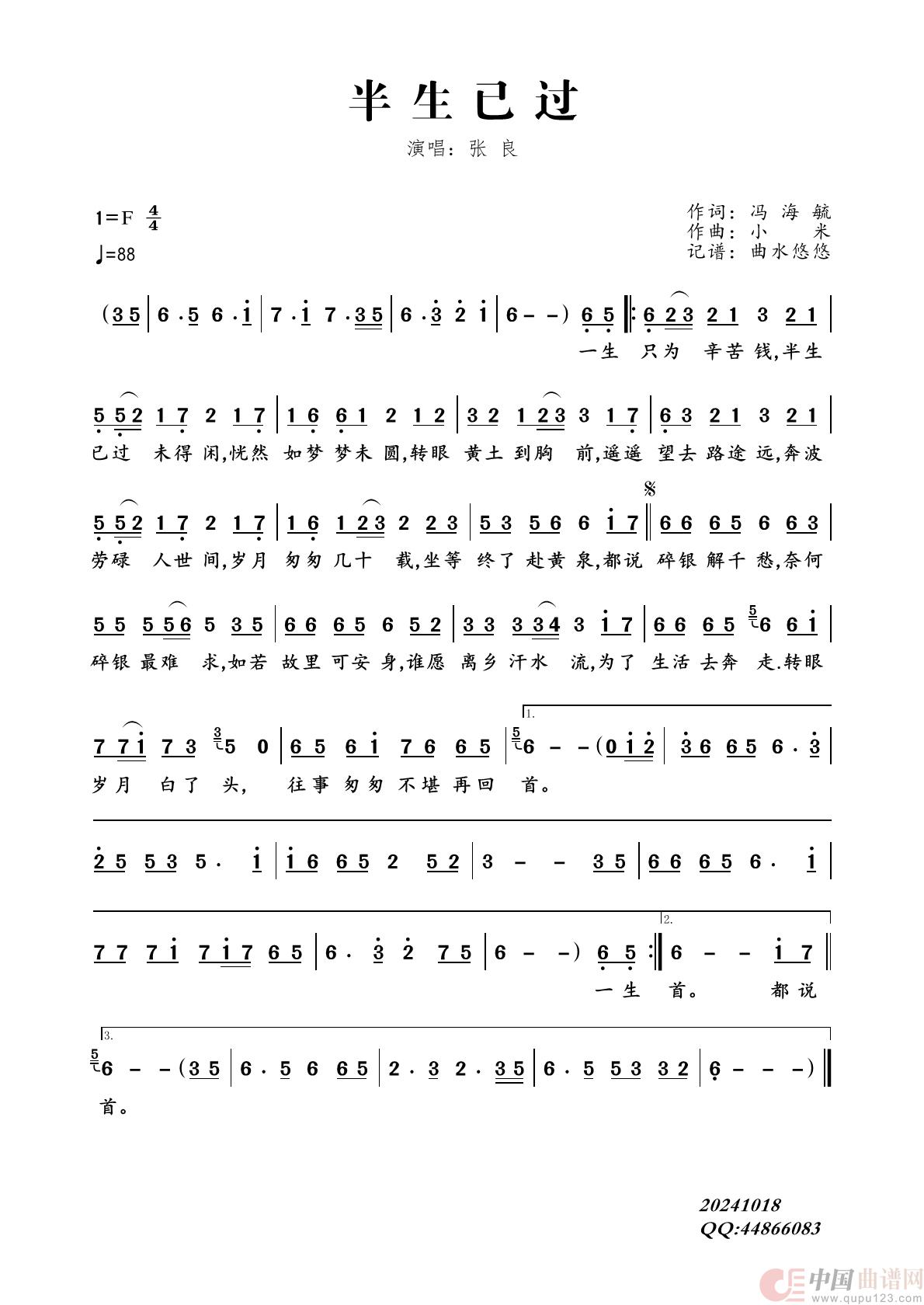 关于《半生已过》曲谱的评论