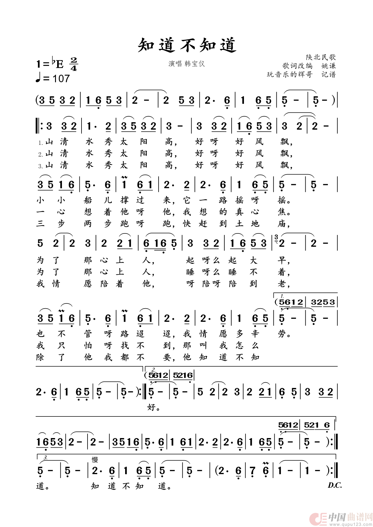 作词:姚谦   作曲:陕北民歌   演唱(奏):韩宝仪   来源:谱友玩音乐的辉哥上传   上传:玩音乐的辉哥   日期:2024-11-03   浏览次数:
