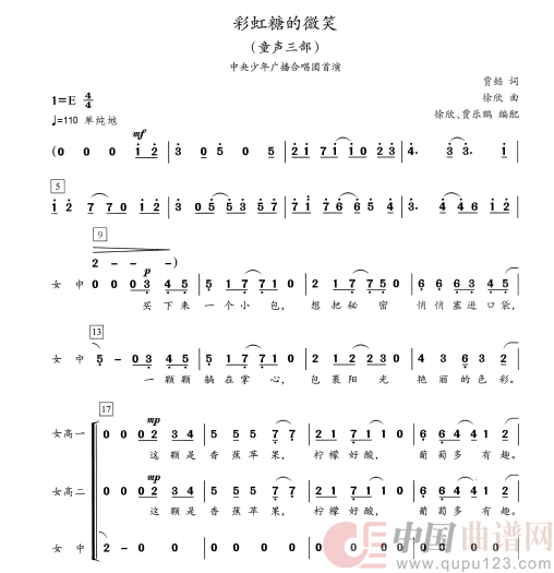 彩虹糖的微笑SSA合唱简谱