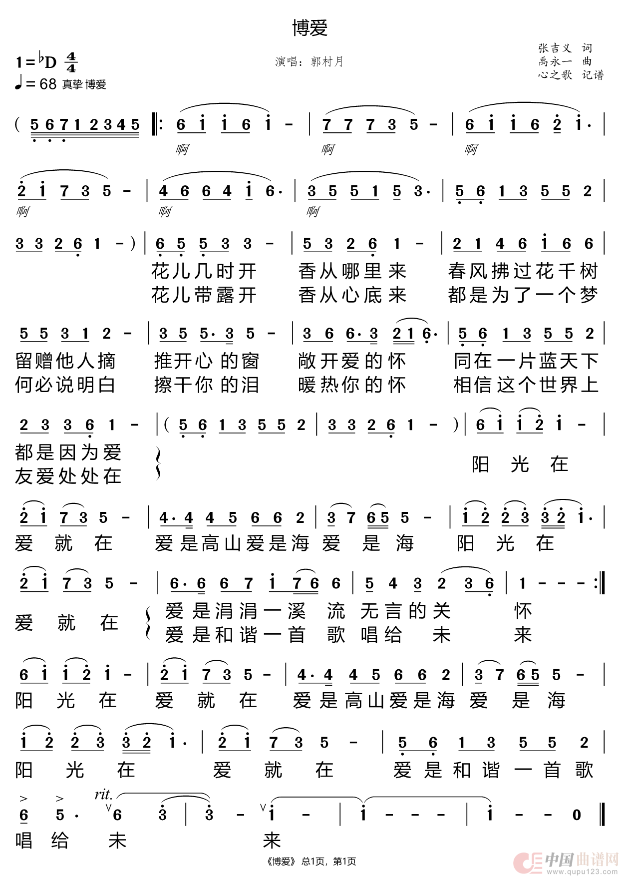 关于《博爱》曲谱的评论