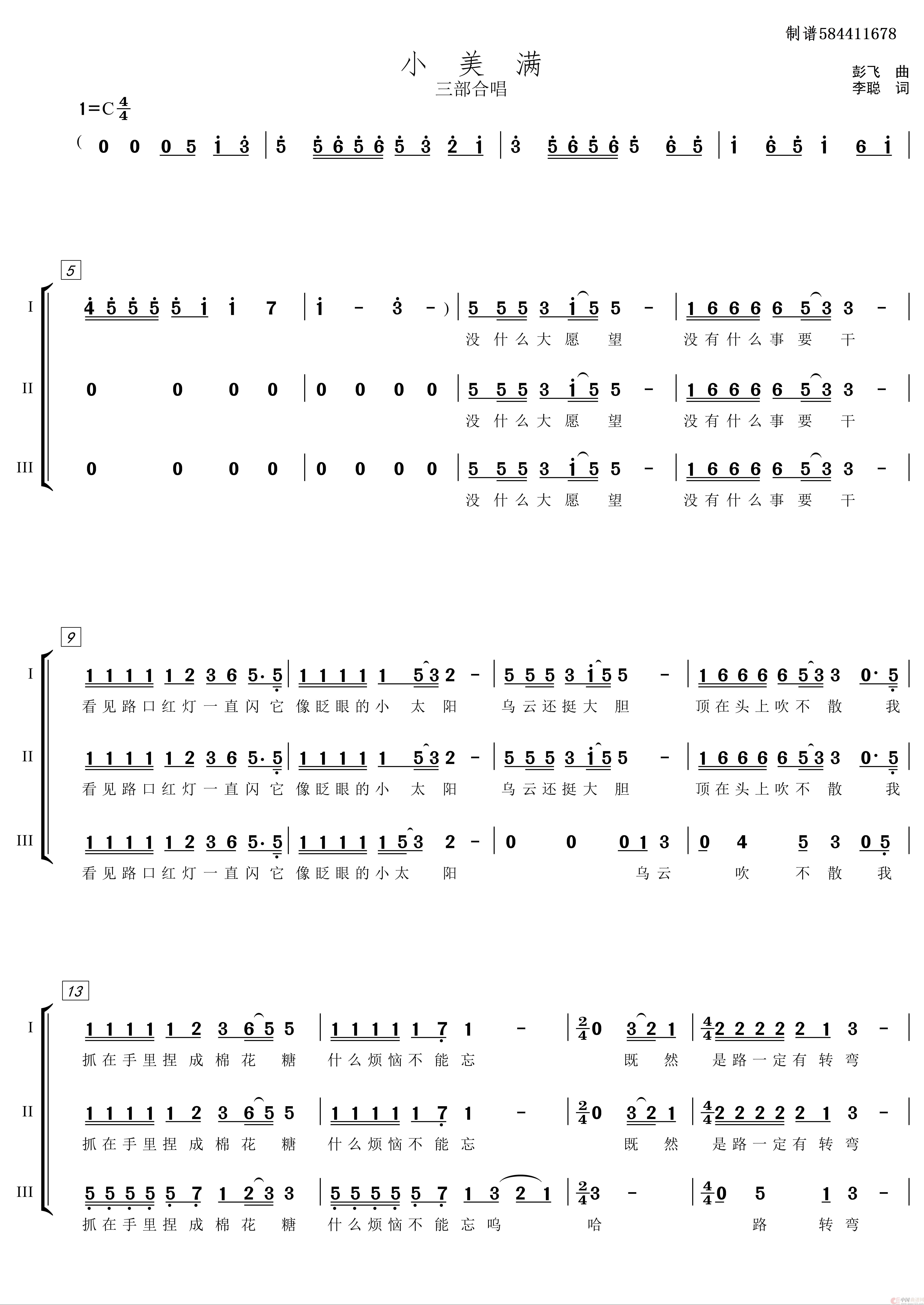 小美满三声部合唱简谱