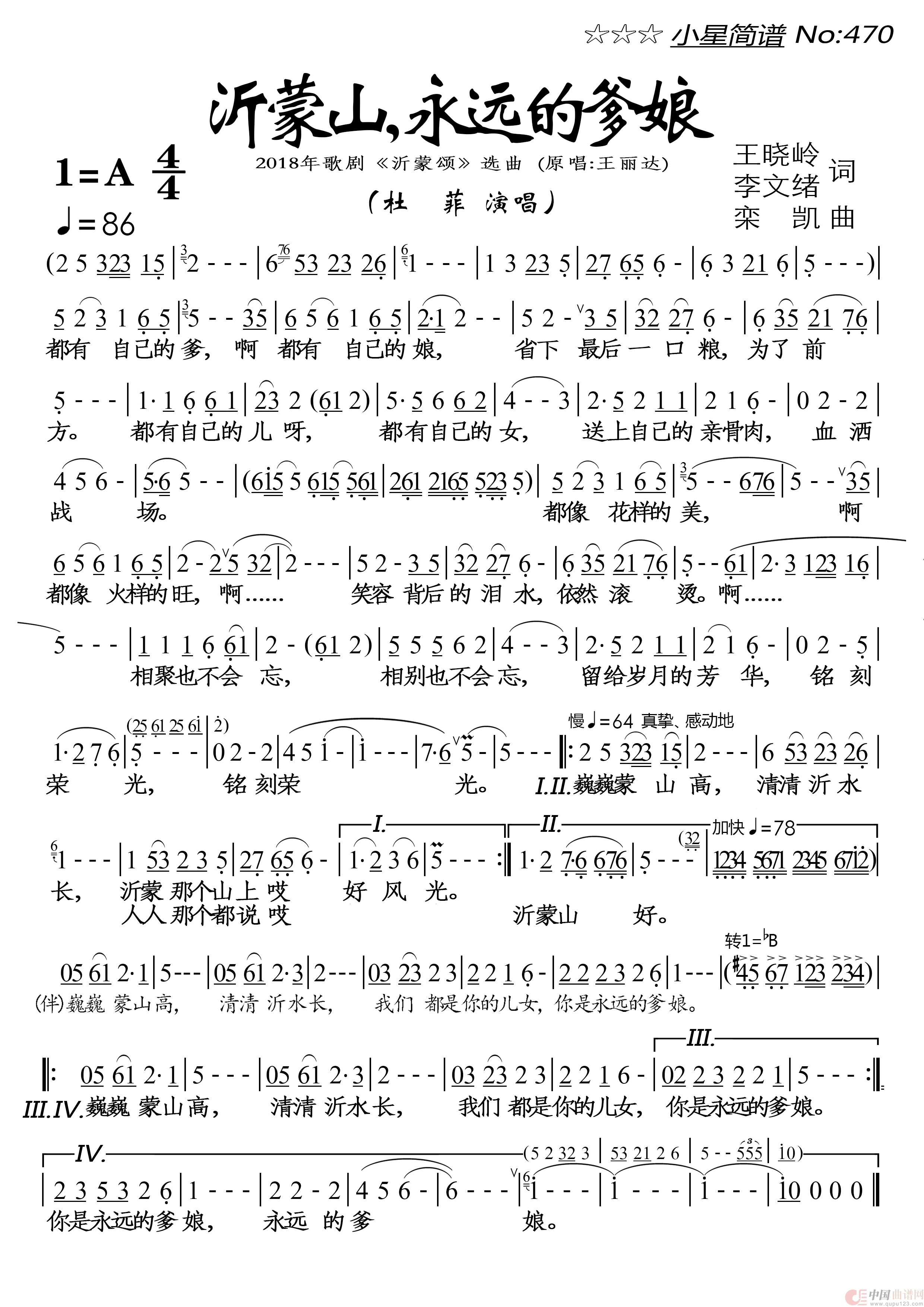 关于《沂蒙山,永远的爹娘》曲谱的评论