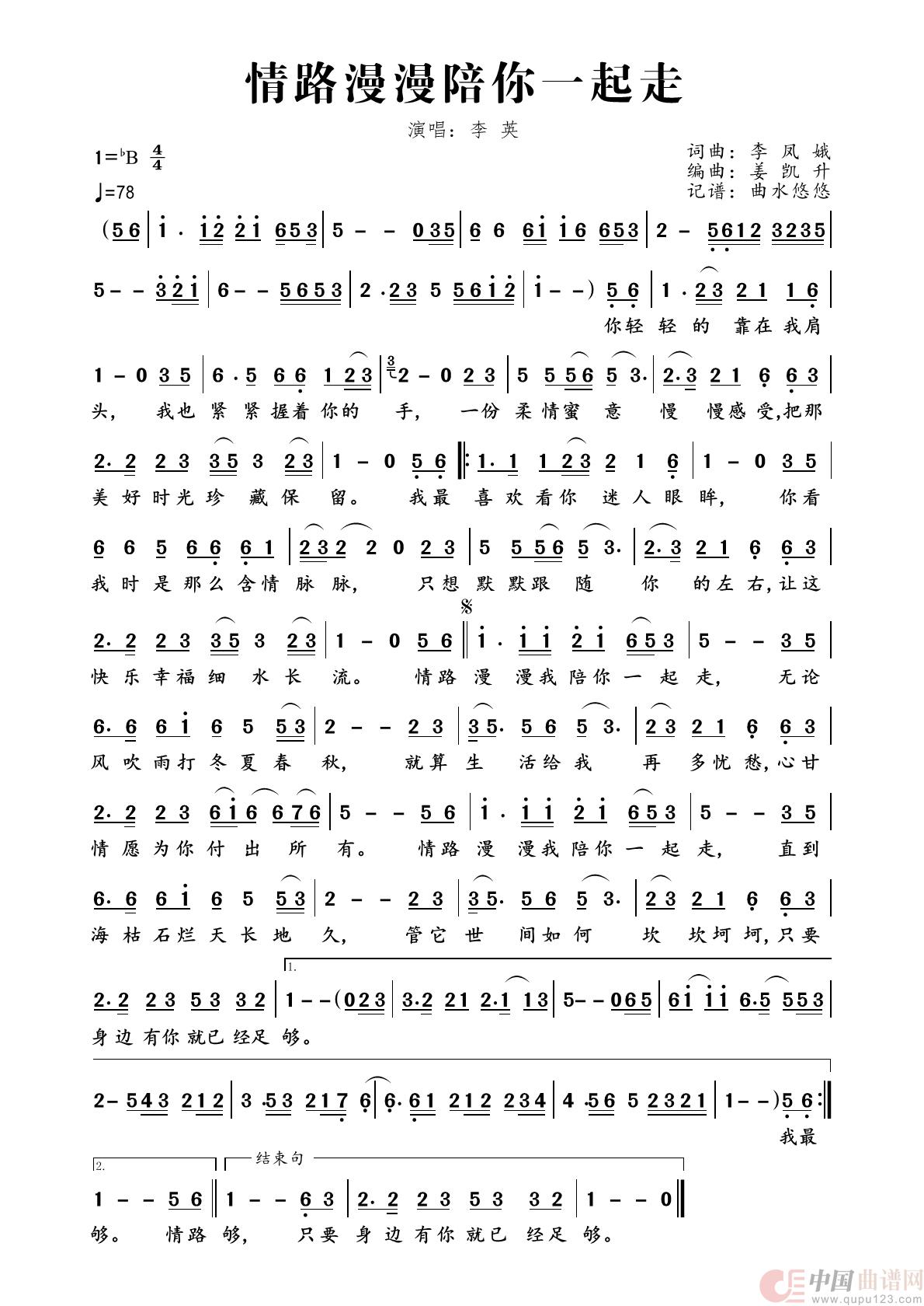 关于《情路漫漫陪你一起走》曲谱的评论