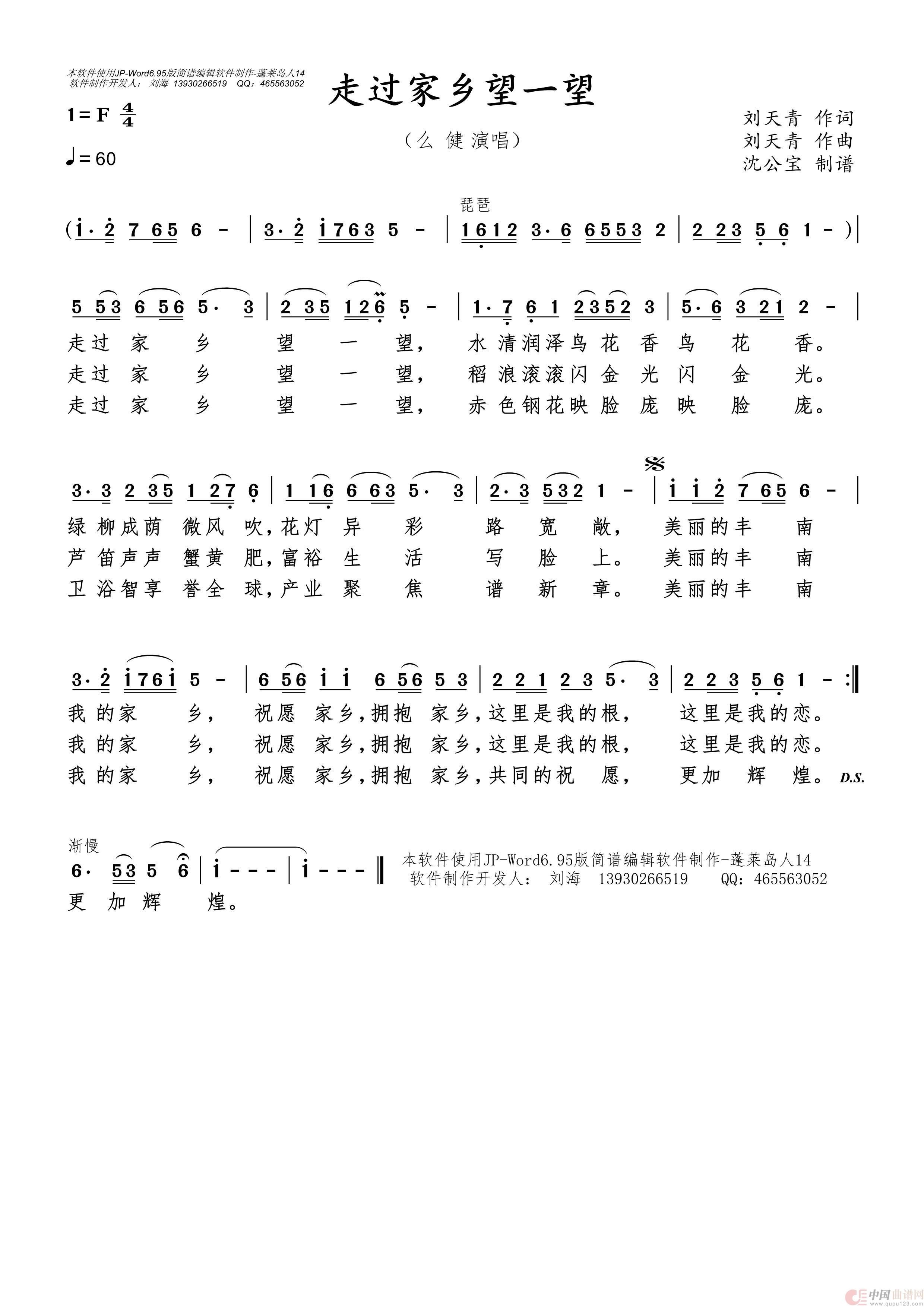 关于《走过家乡望一望》曲谱的评论
