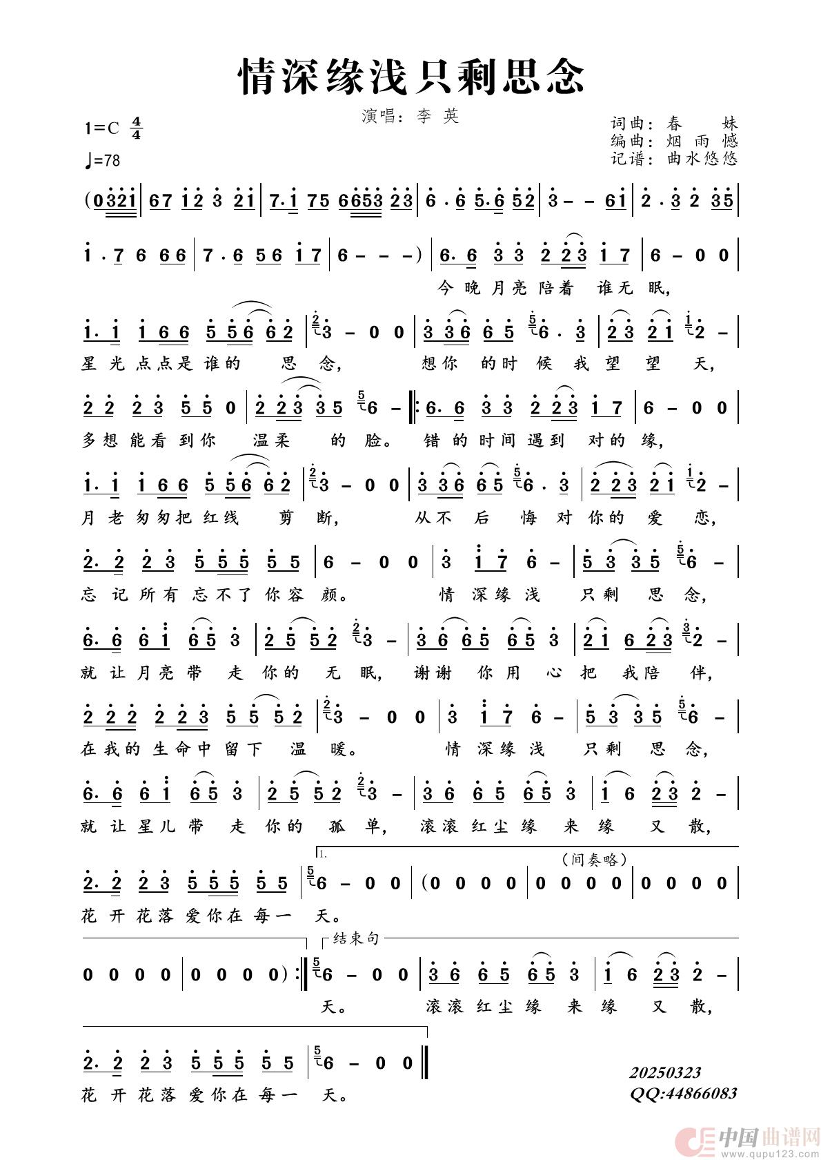 关于《情深缘浅只剩思念》曲谱的评论