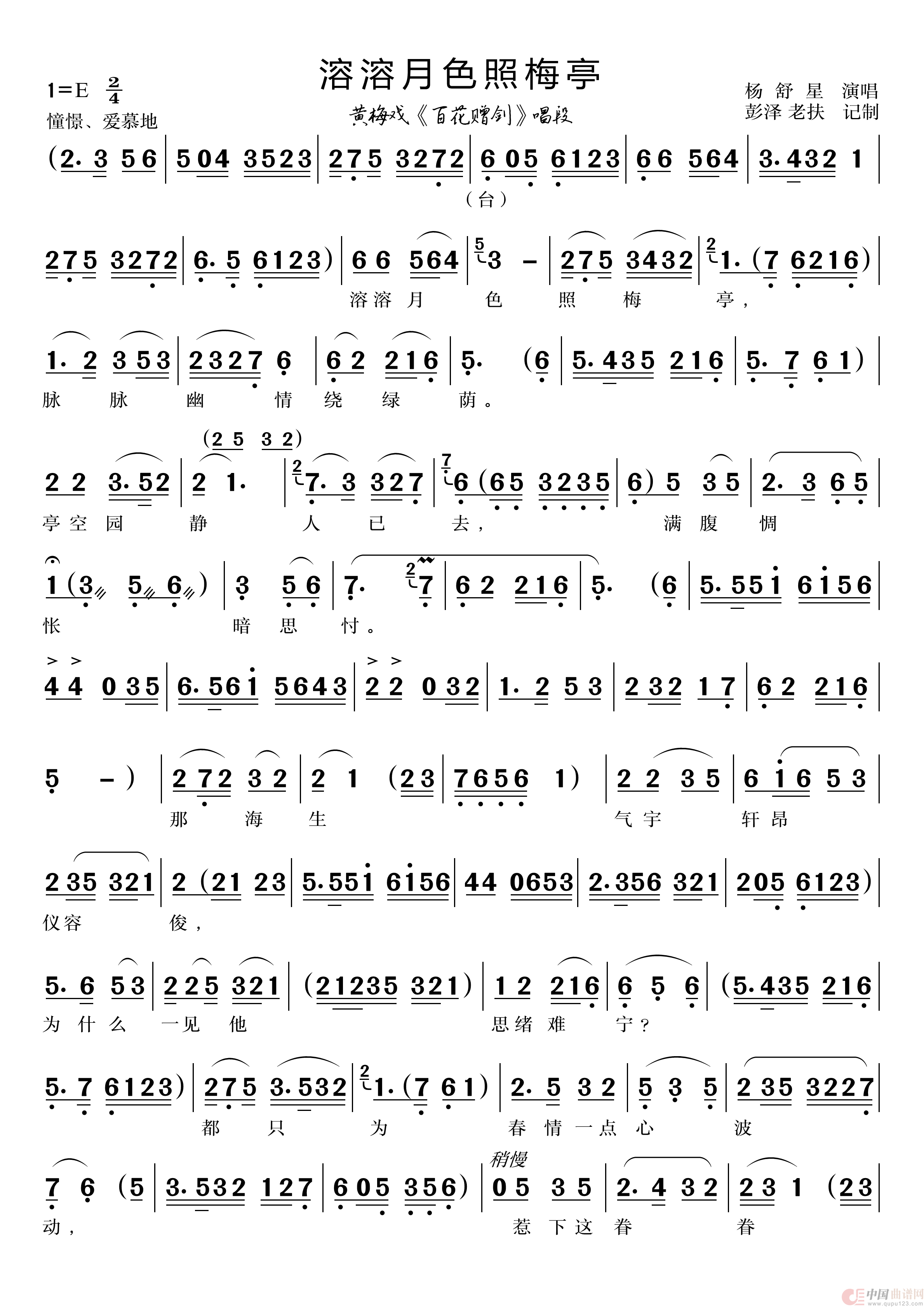 关于《溶溶月色照梅亭》曲谱的评论