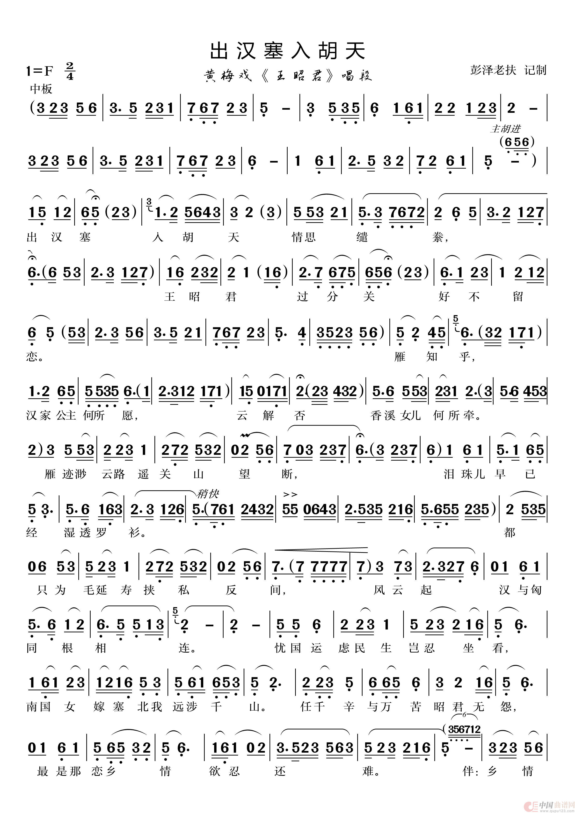 出汉塞入胡天(黄梅戏《王昭君》唱段)