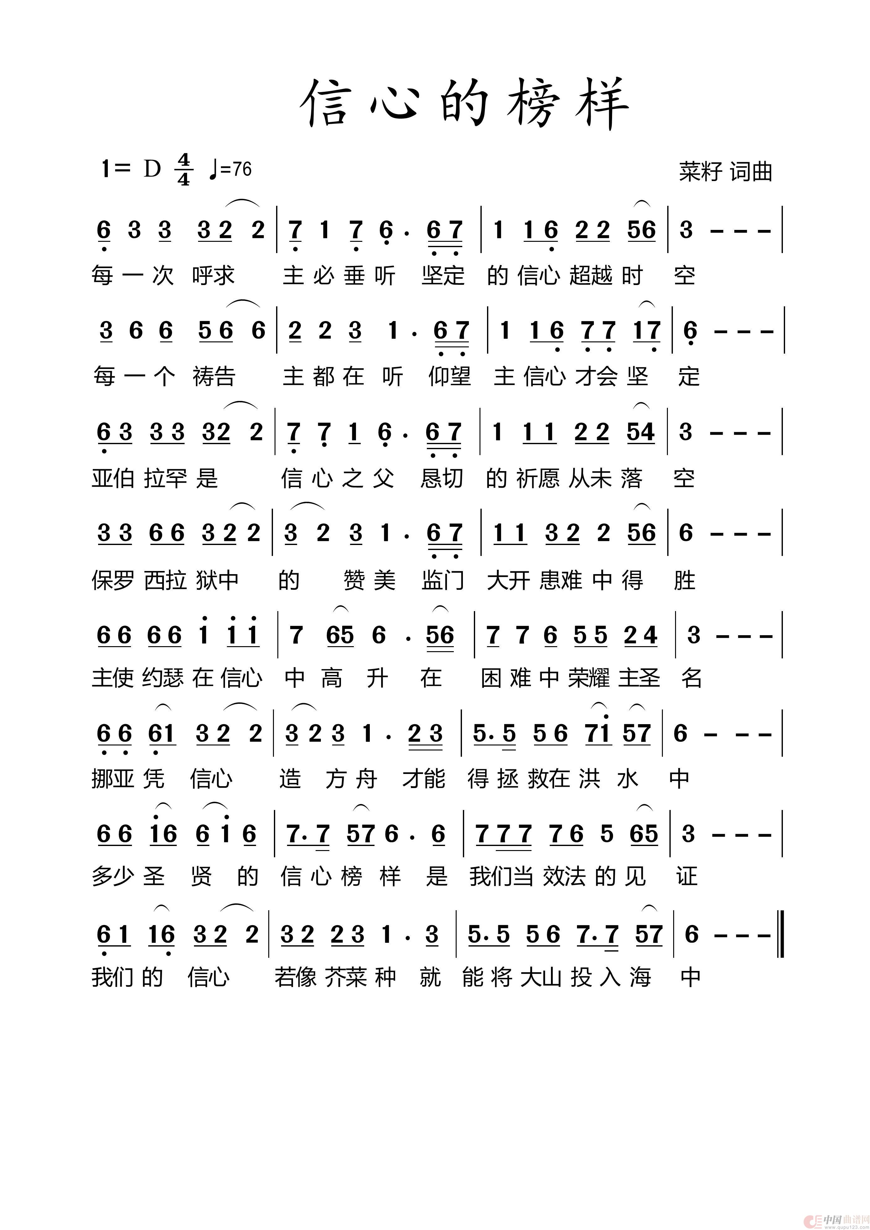 关于《672信心的榜样》曲谱的评论