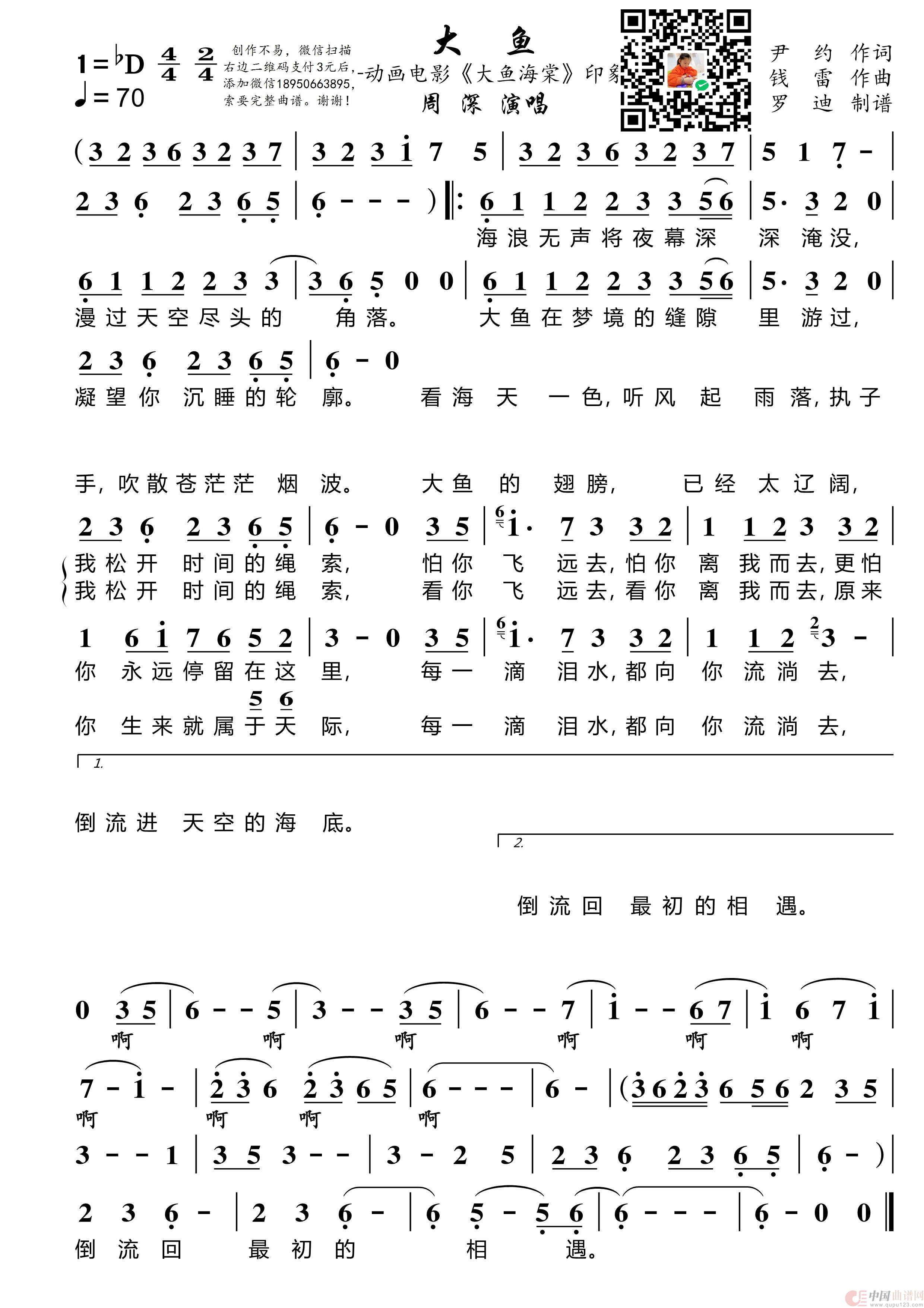 关于《大鱼》曲谱的评论