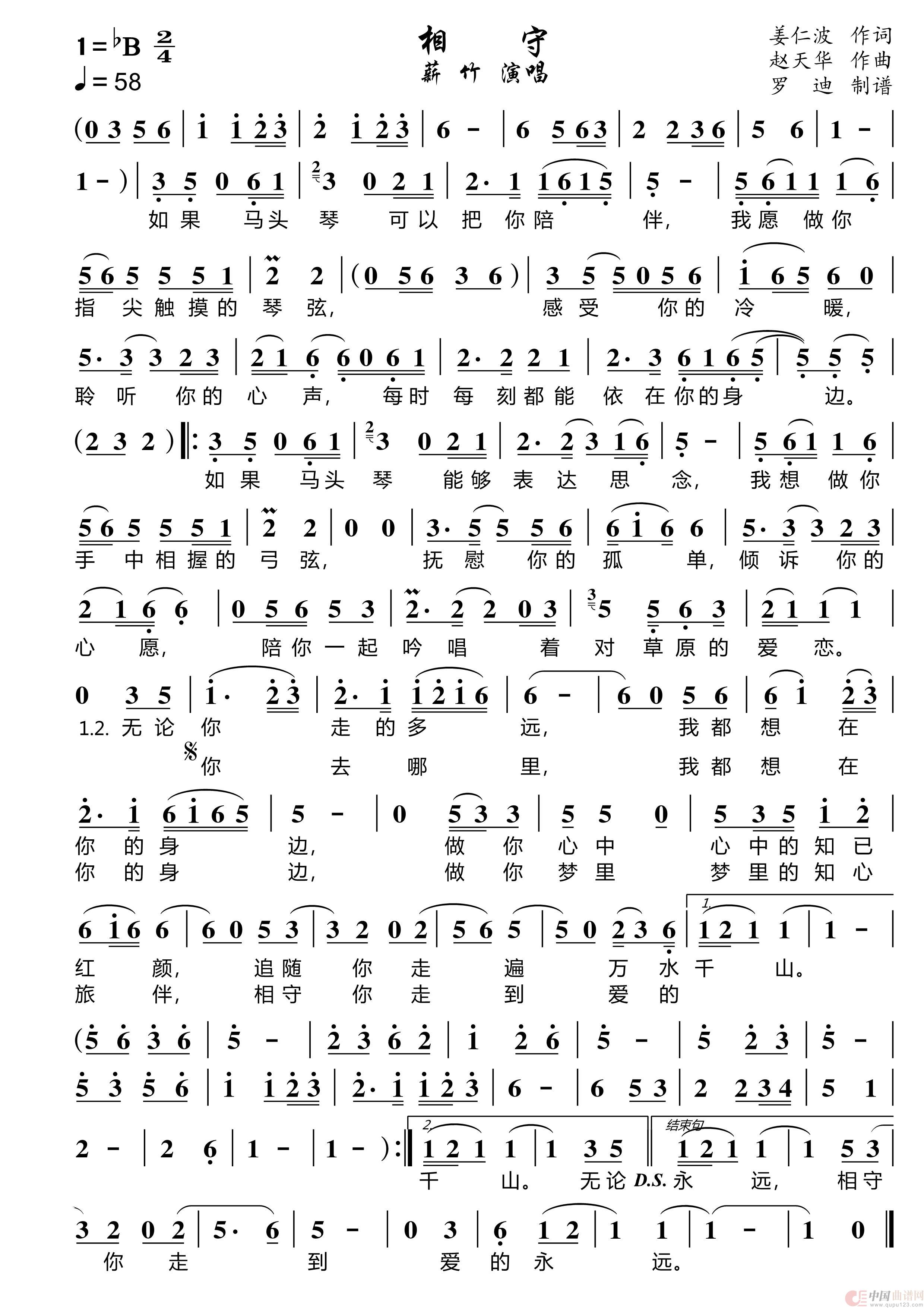 作词:姜仁波   作曲:赵天华   演唱(奏):薪竹   来源:根据薪竹演唱记谱   上传:罗迪   日期:2025-07-12   浏览次数:
