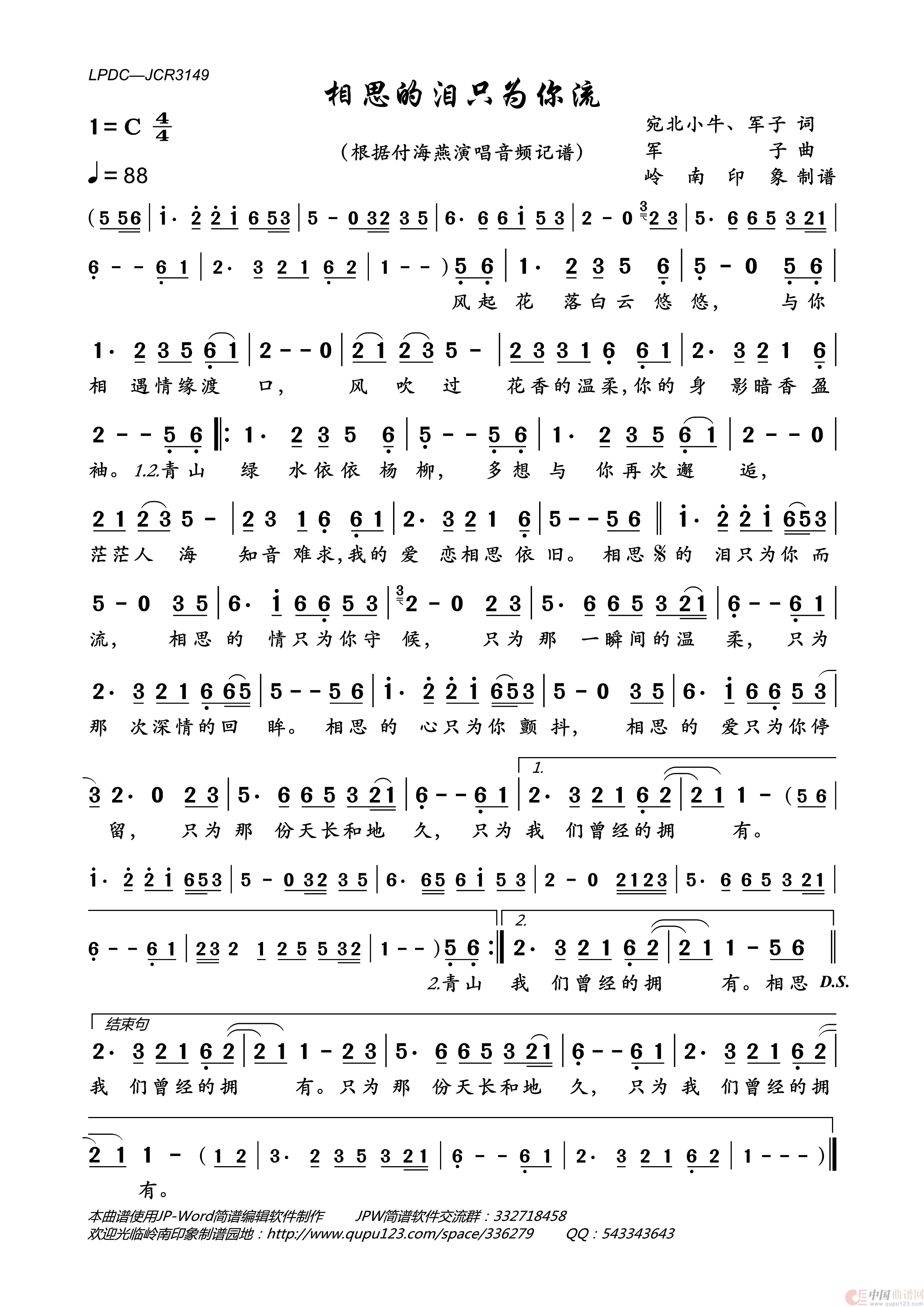 提示:在曲谱图片上单击右键,选择"图片另存为..."即可将曲谱保存到您的电脑中,打印时候可将图片插入到WORD中,调整合适大小打印即可。