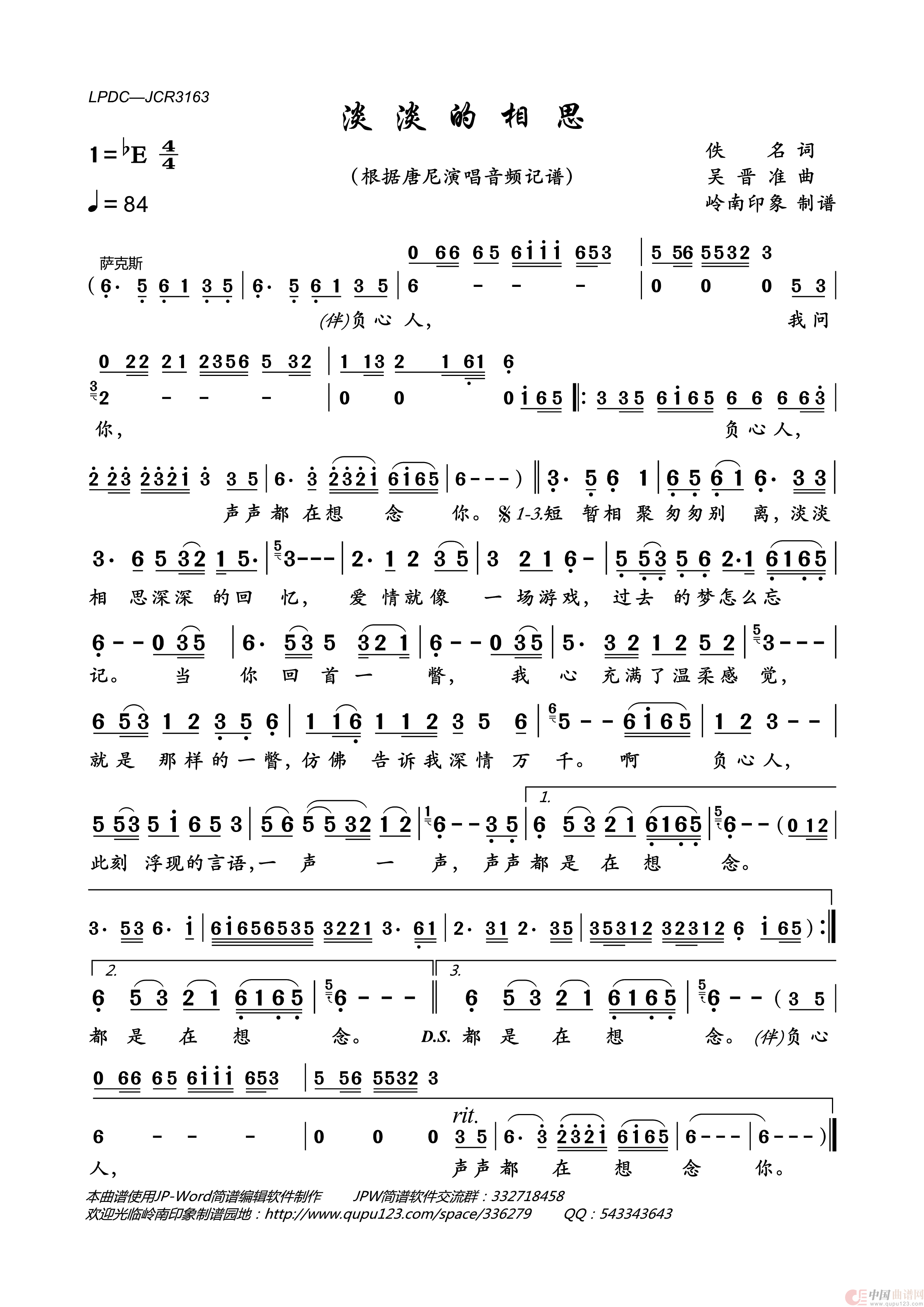 提示:在曲谱图片上单击右键,选择"图片另存为..."即可将曲谱保存到您的电脑中,打印时候可将图片插入到WORD中,调整合适大小打印即可。
