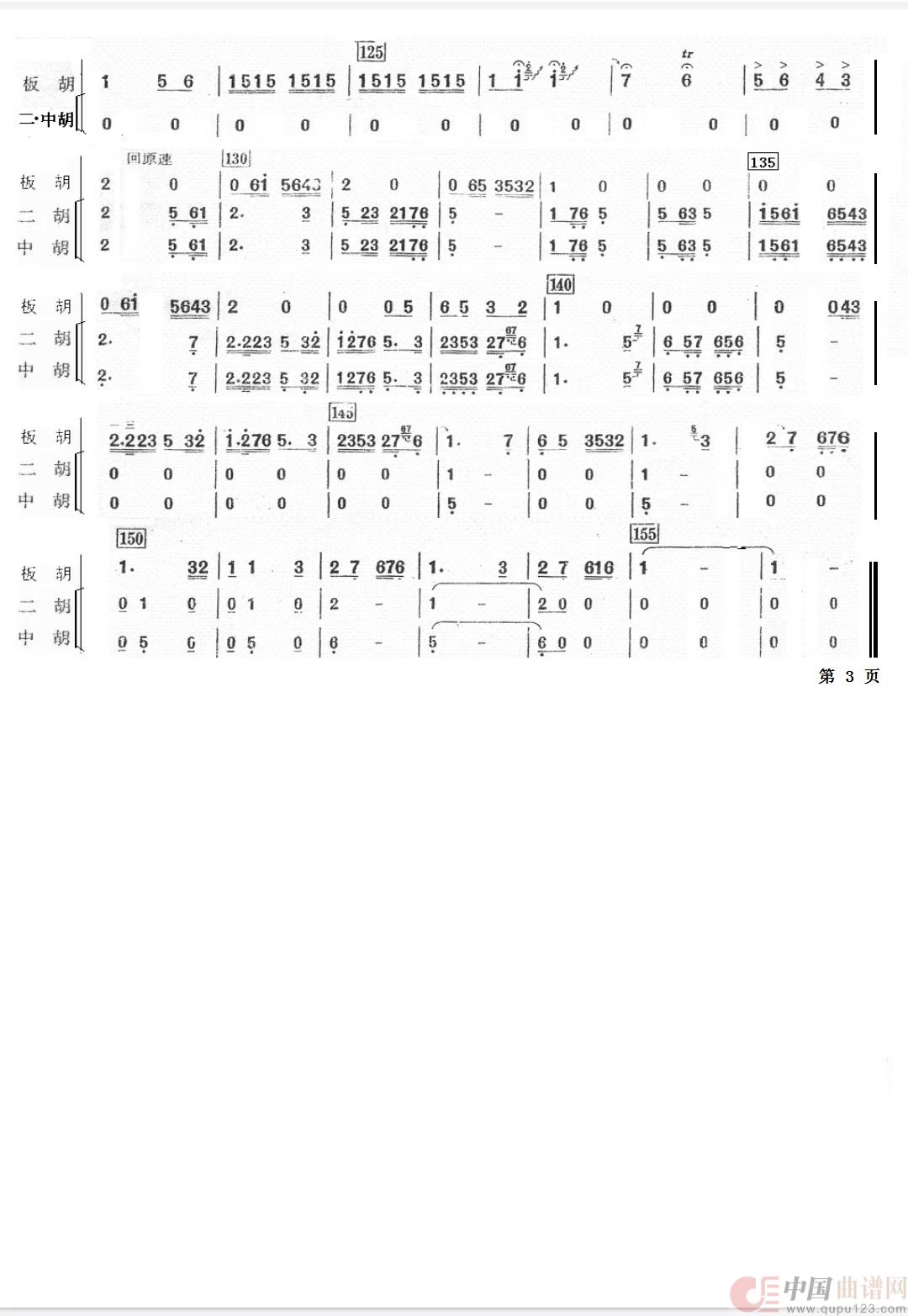 板胡与乐队 大姑娘美 板胡二胡中胡分谱