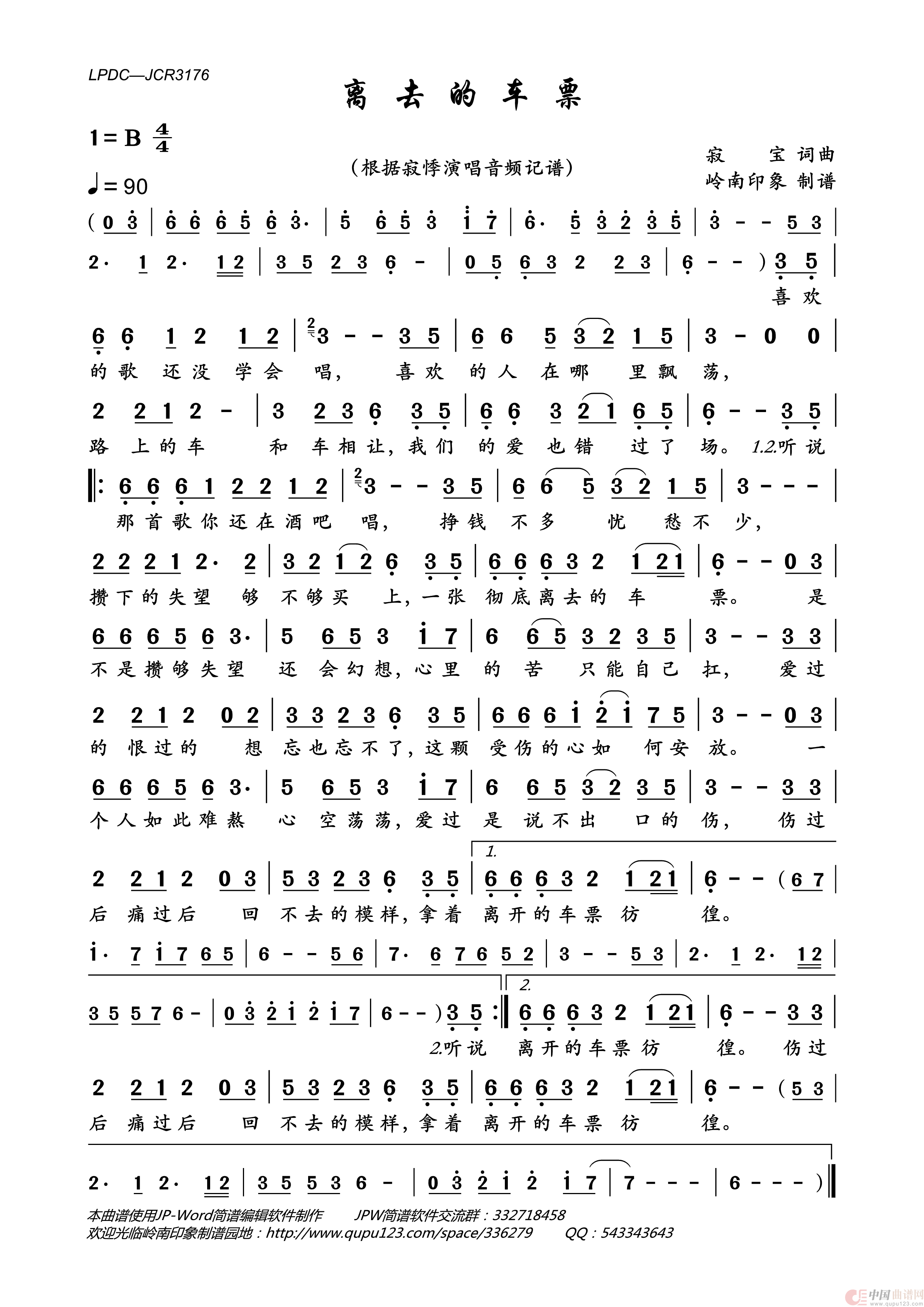 《离去的车票》文本歌词