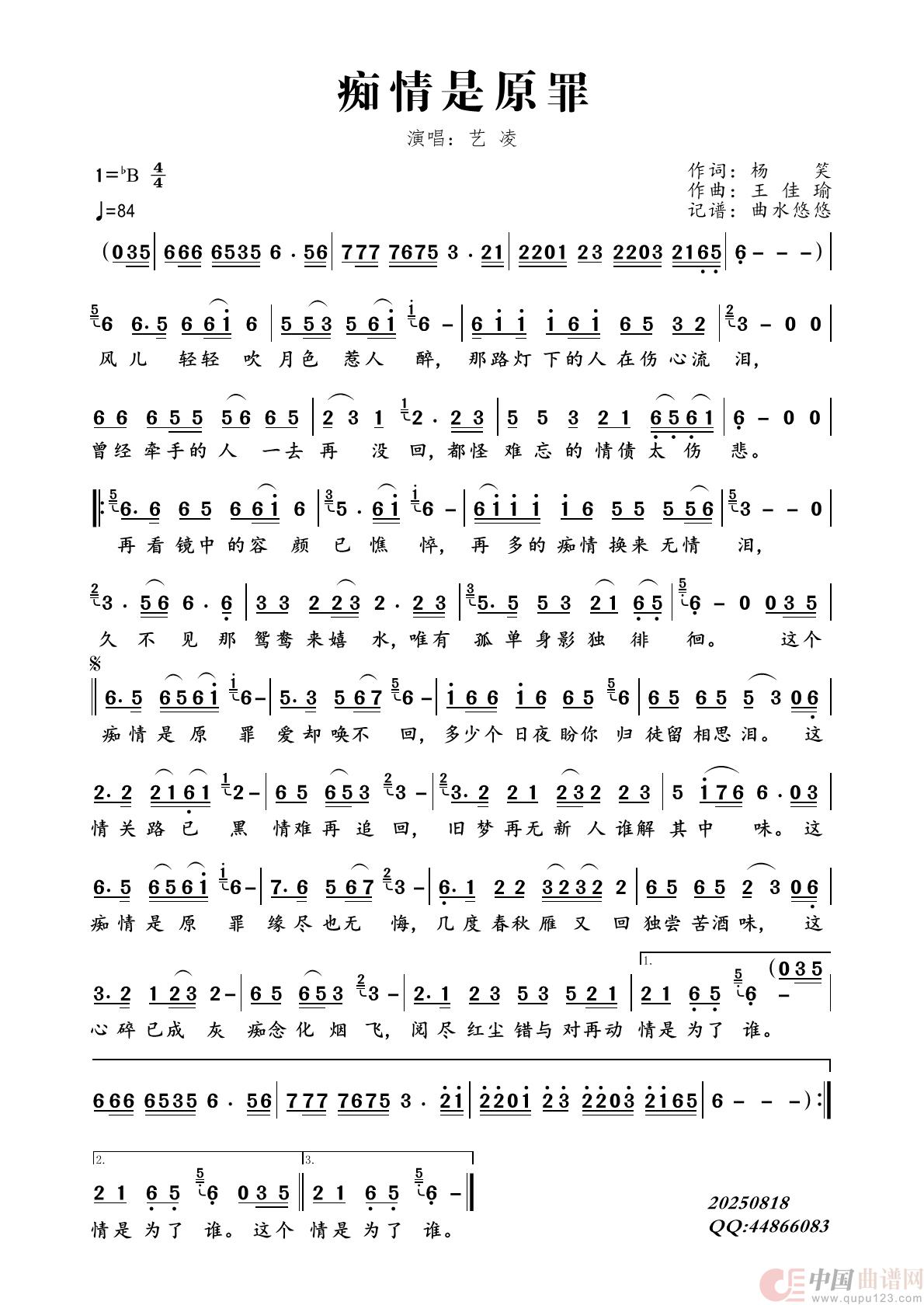 关于《痴情是原罪》曲谱的评论