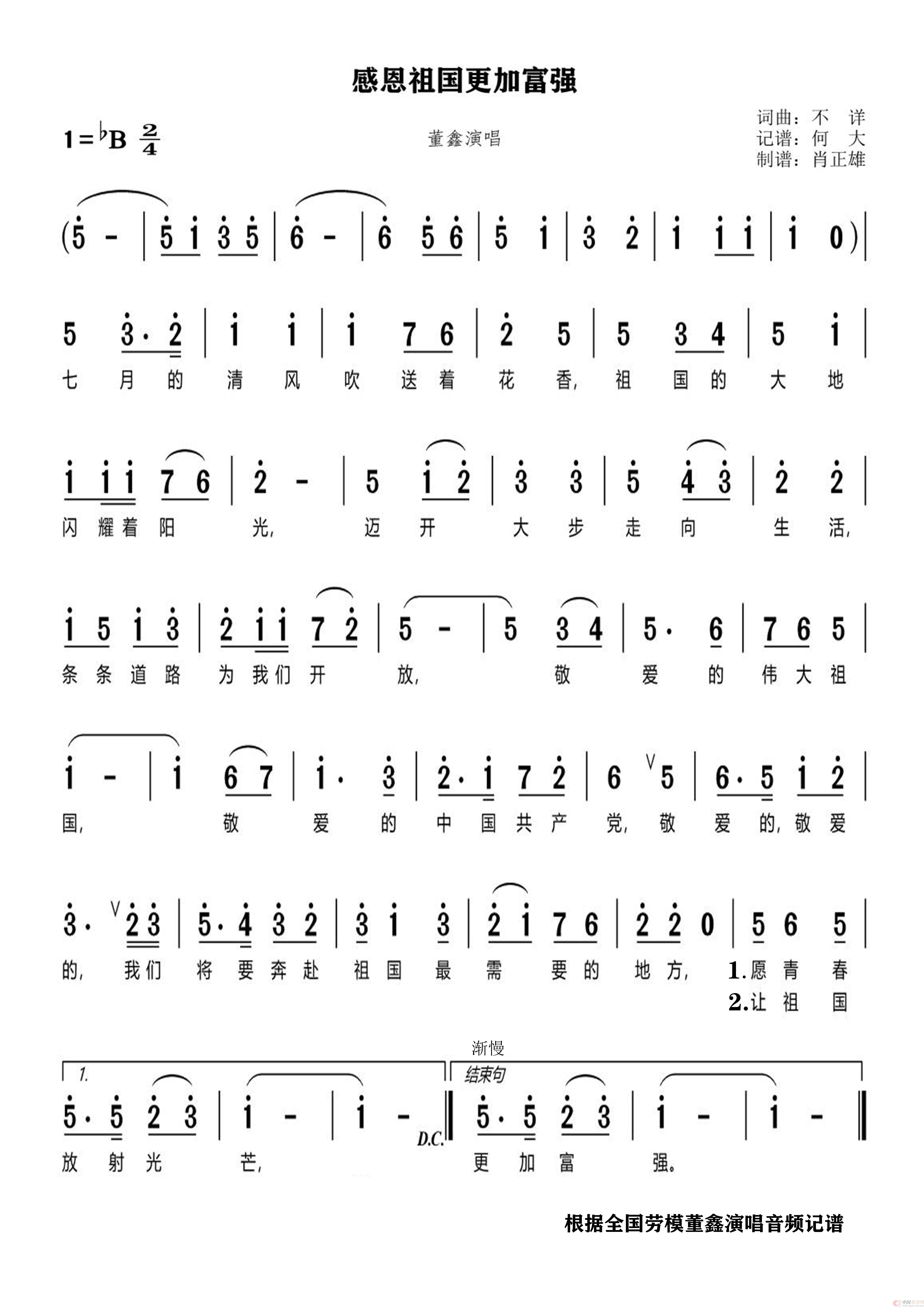 感恩祖国更加富强(何大记谱)