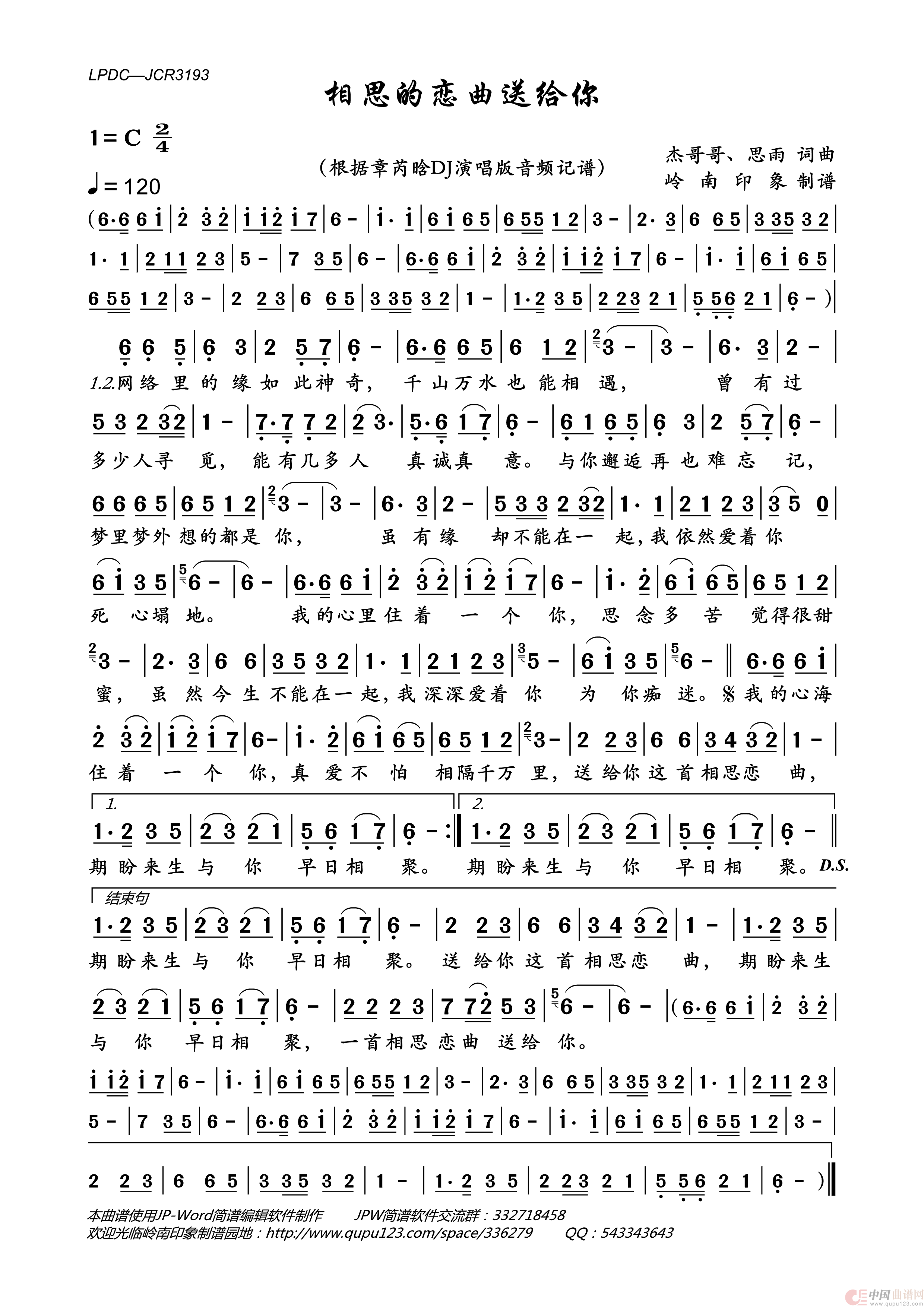 提示:在曲谱图片上单击右键,选择"图片另存为..."即可将曲谱保存到您的电脑中,打印时候可将图片插入到WORD中,调整合适大小打印即可。