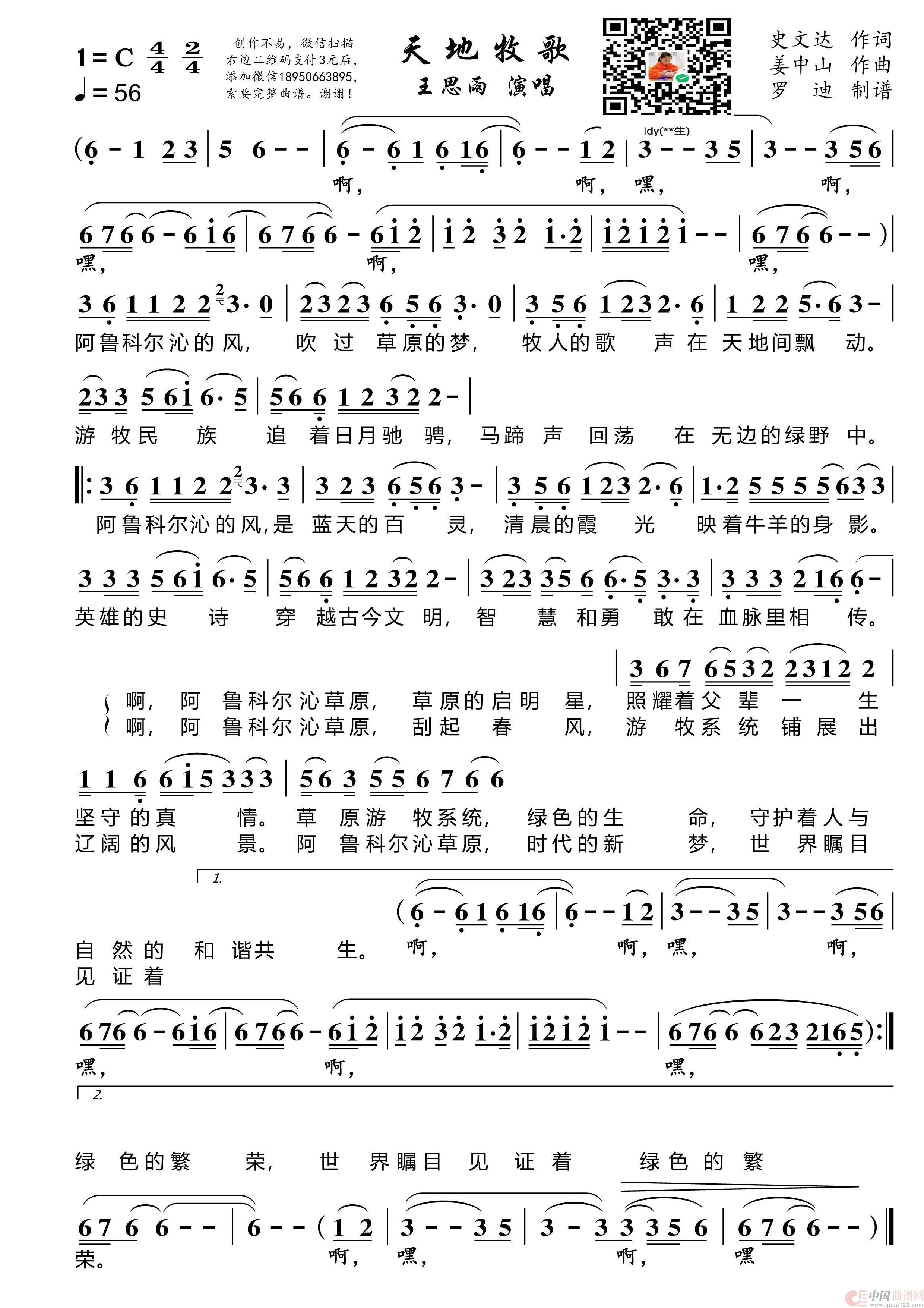 作词:史文达   作曲:姜中山   演唱(奏):王思雨   来源:根据王思雨演唱记谱   上传:罗迪   日期:2025-09-06   浏览次数: