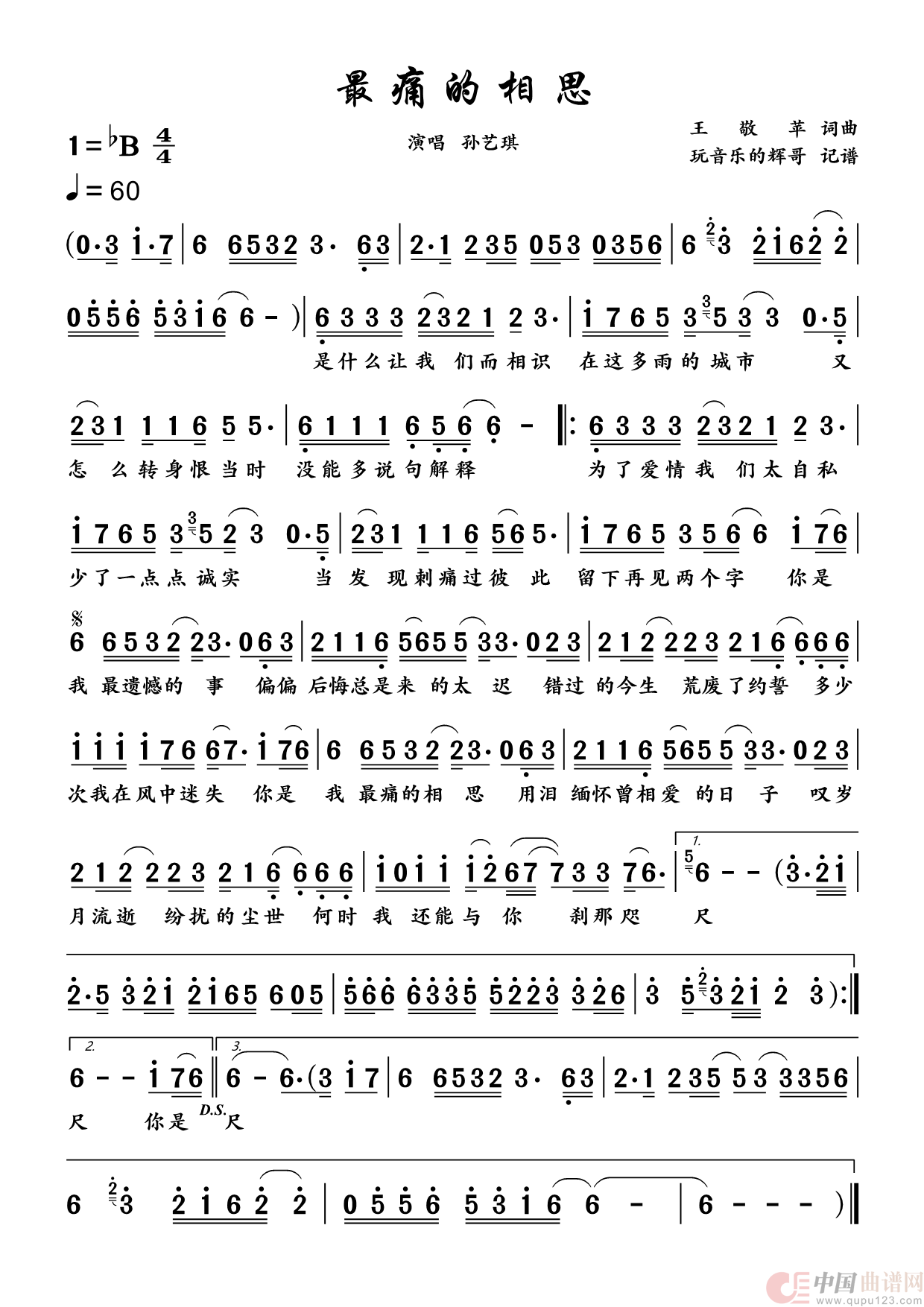 关于《最痛的相思》曲谱的评论