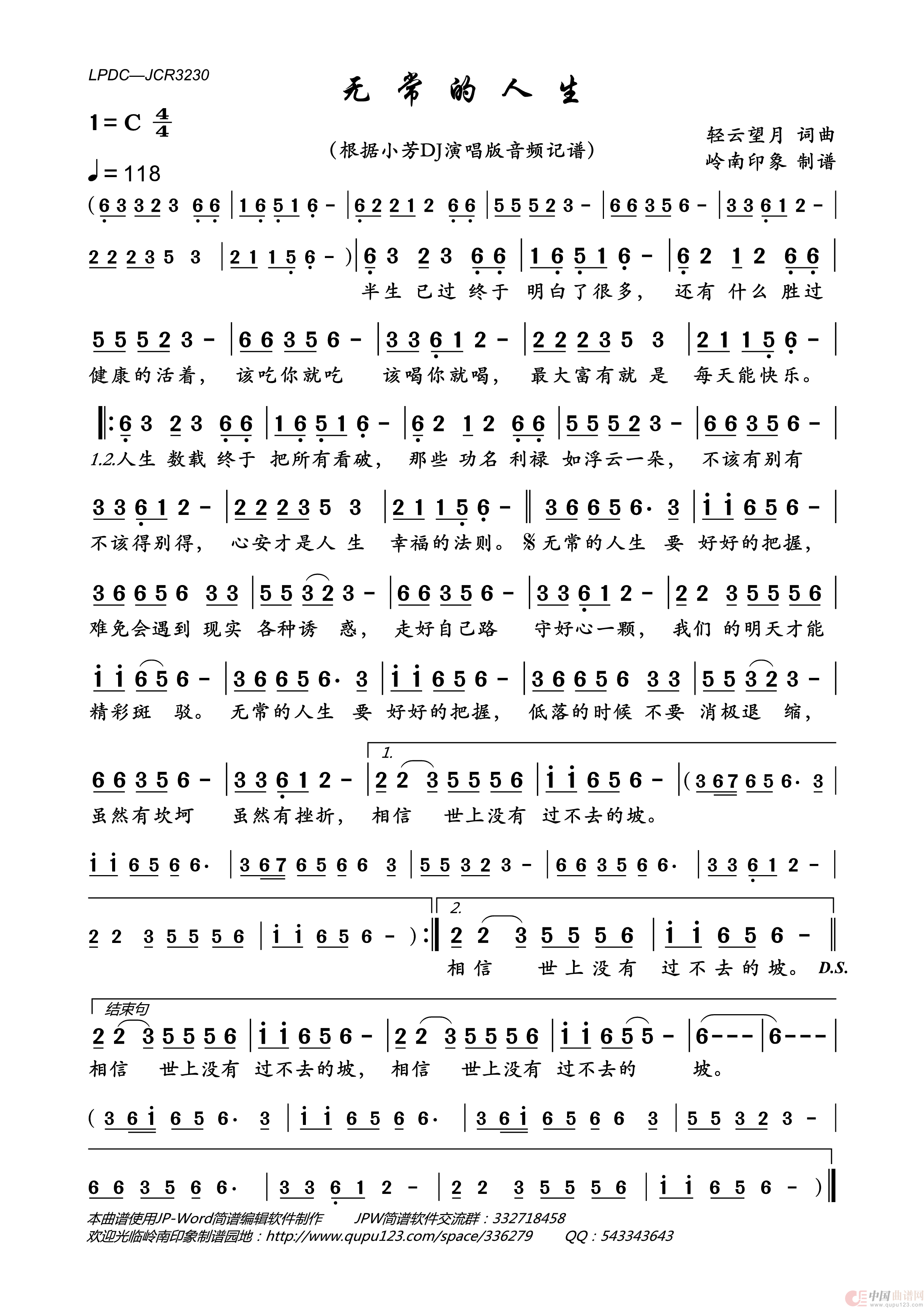 《无常的人生》文本歌词