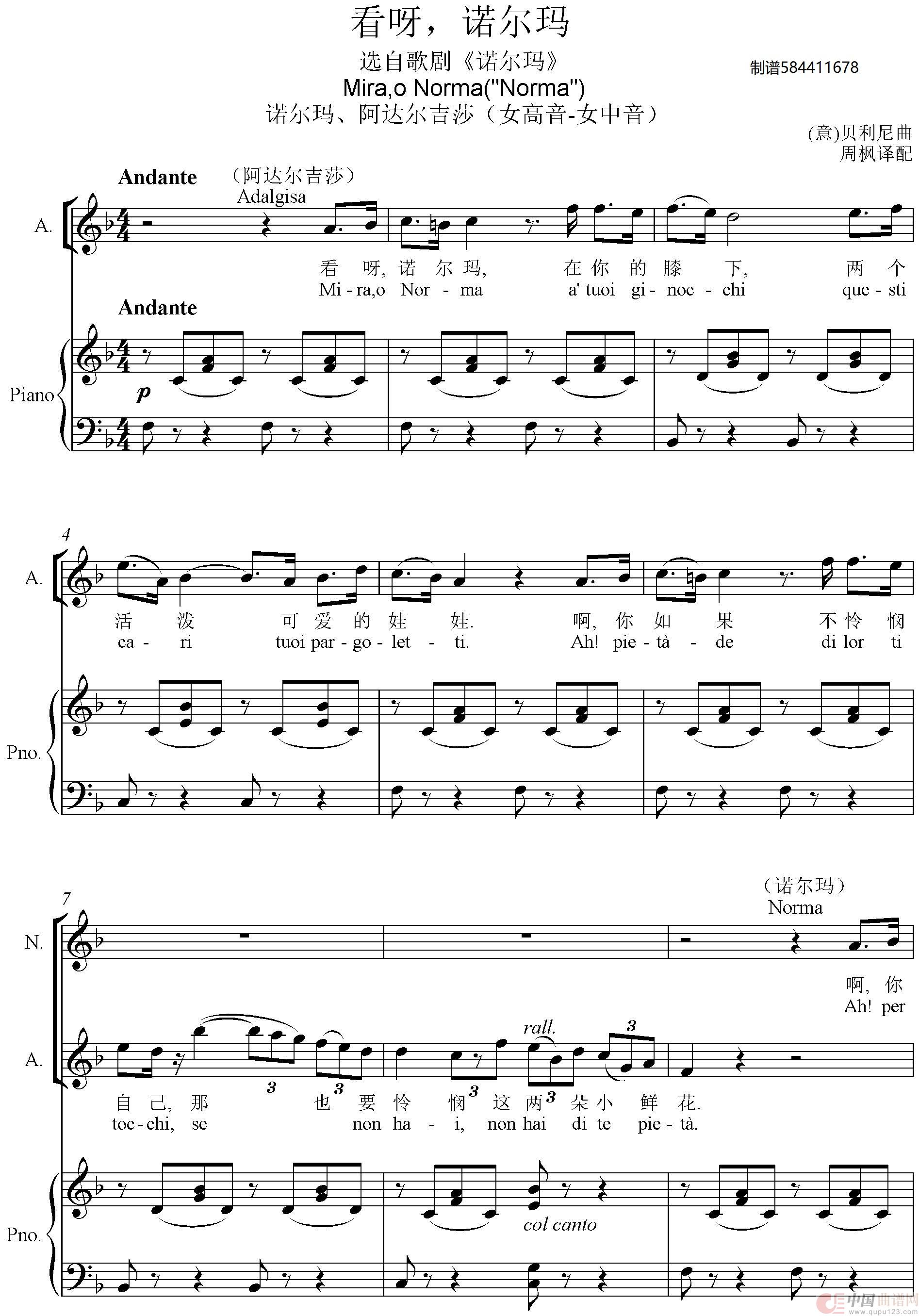 看呀诺尔玛合唱谱