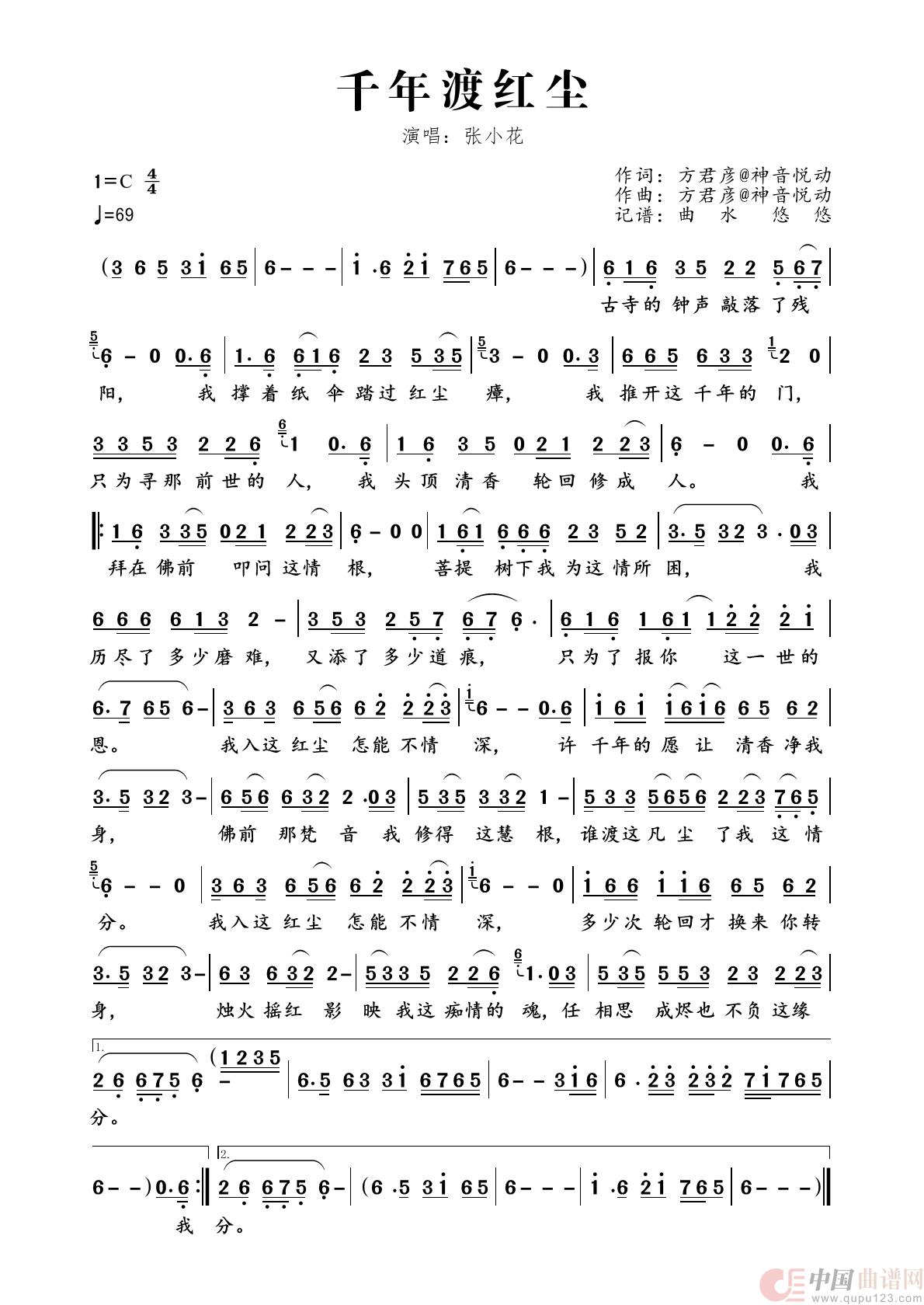 作词:方君彦@神音悦动 作曲:方君彦@神音悦动 演唱(奏):张小花 来源:谱友曲水悠悠上传 上传:曲水悠悠