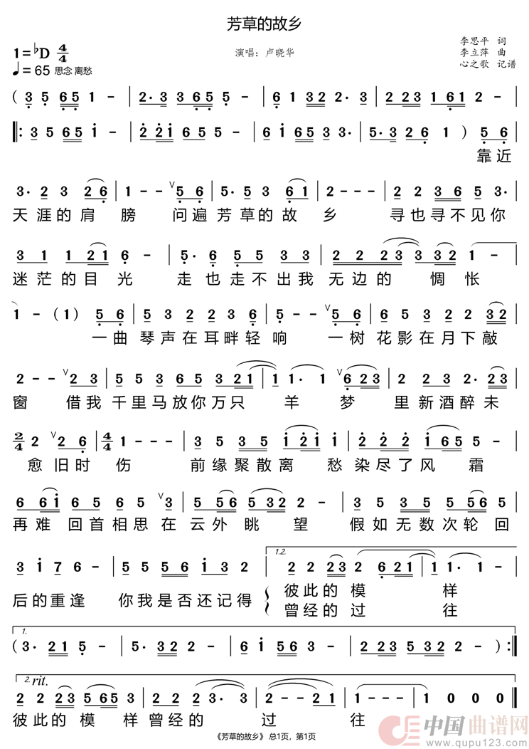 提示:在曲谱图片上单击右键,选择"图片另存为..."即可将曲谱保存到您的电脑中,打印时候可将图片插入到WORD中,调整合适大小打印即可。