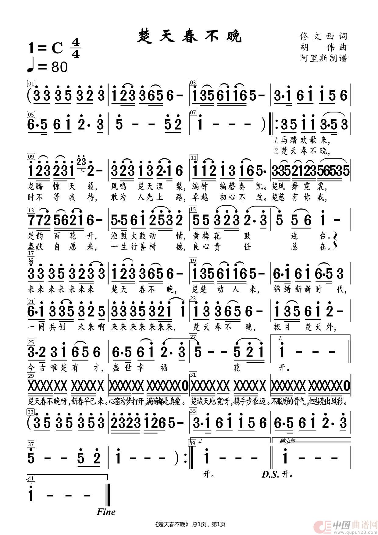 关于《楚天春不晚》曲谱的评论