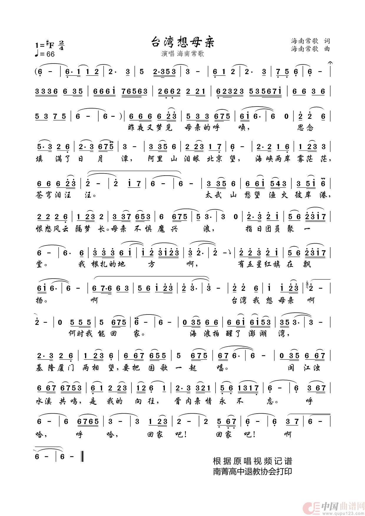 作词:海南常歌 作曲:海南常歌 演唱(奏):海南常歌 来源:谱友终身学习上传 上传:终身学习