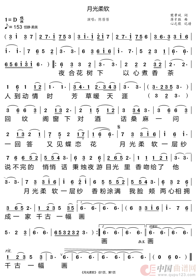 提示:在曲谱图片上单击右键,选择"图片另存为..."即可将曲谱保存到您的电脑中,打印时候可将图片插入到WORD中,调整合适大小打印即可。