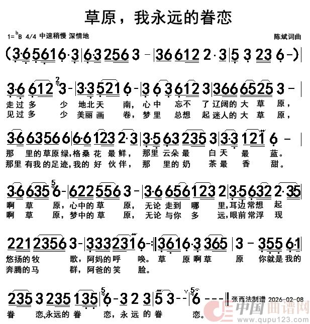 关于《草原,我永远的眷恋》曲谱的评论