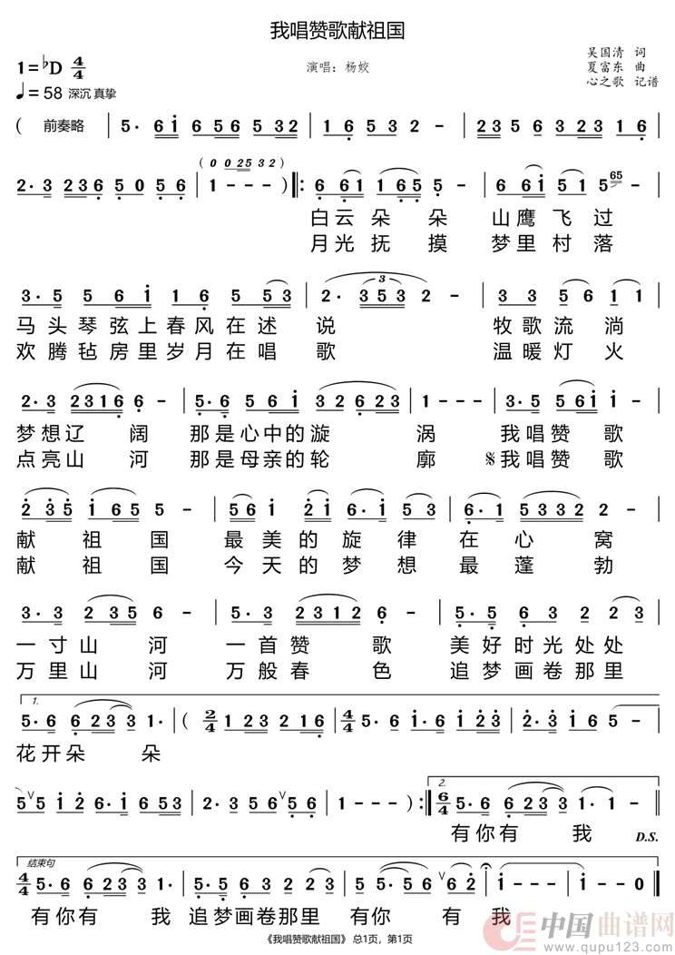 关于《我唱赞歌献祖国》曲谱的评论