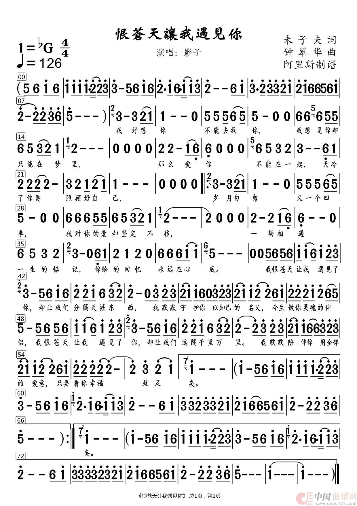 关于《恨苍天让我遇见你》曲谱的评论