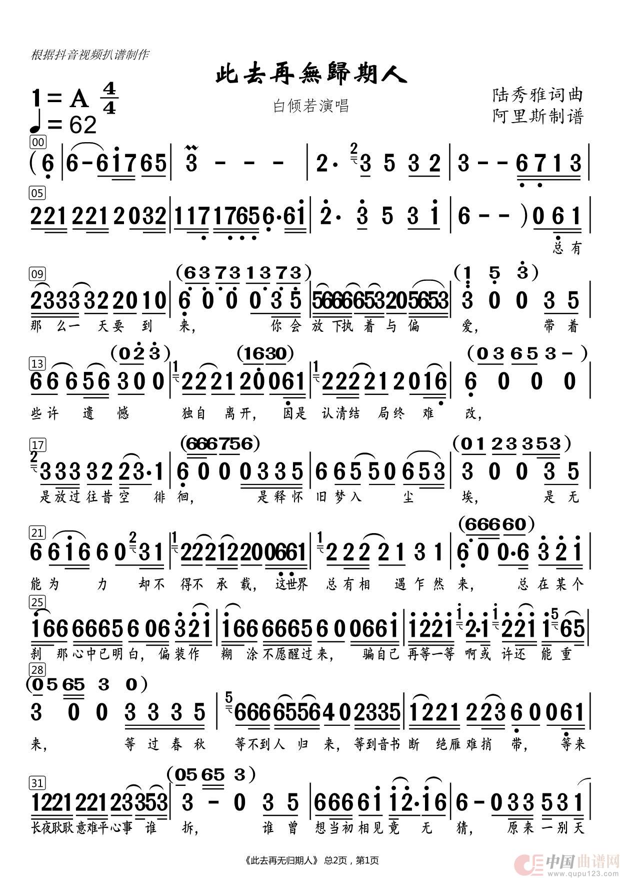 作词:陆秀雅 作曲:陆秀雅 演唱(奏):白倾若 来源:根据网络视频扒谱制作 上传:ywd6115