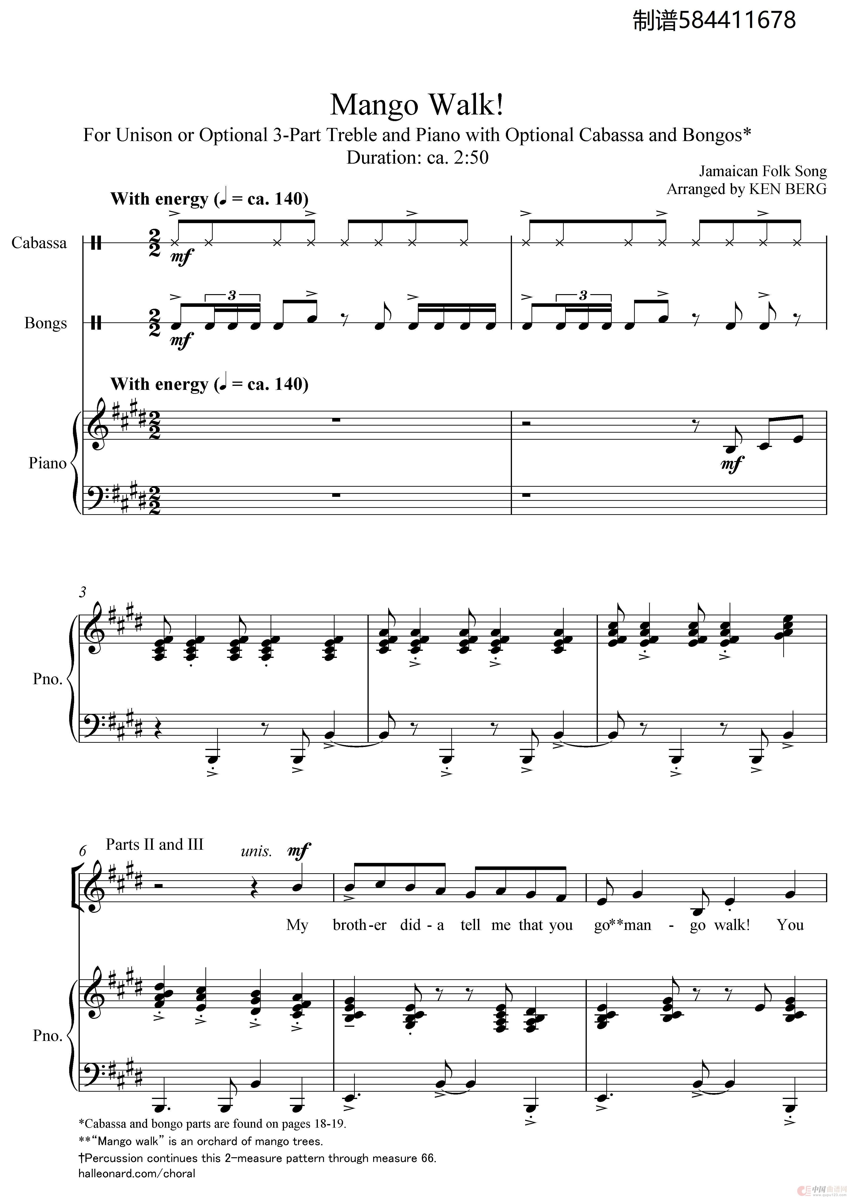 Mango Walk 芒果漫步三声部合唱谱SSA