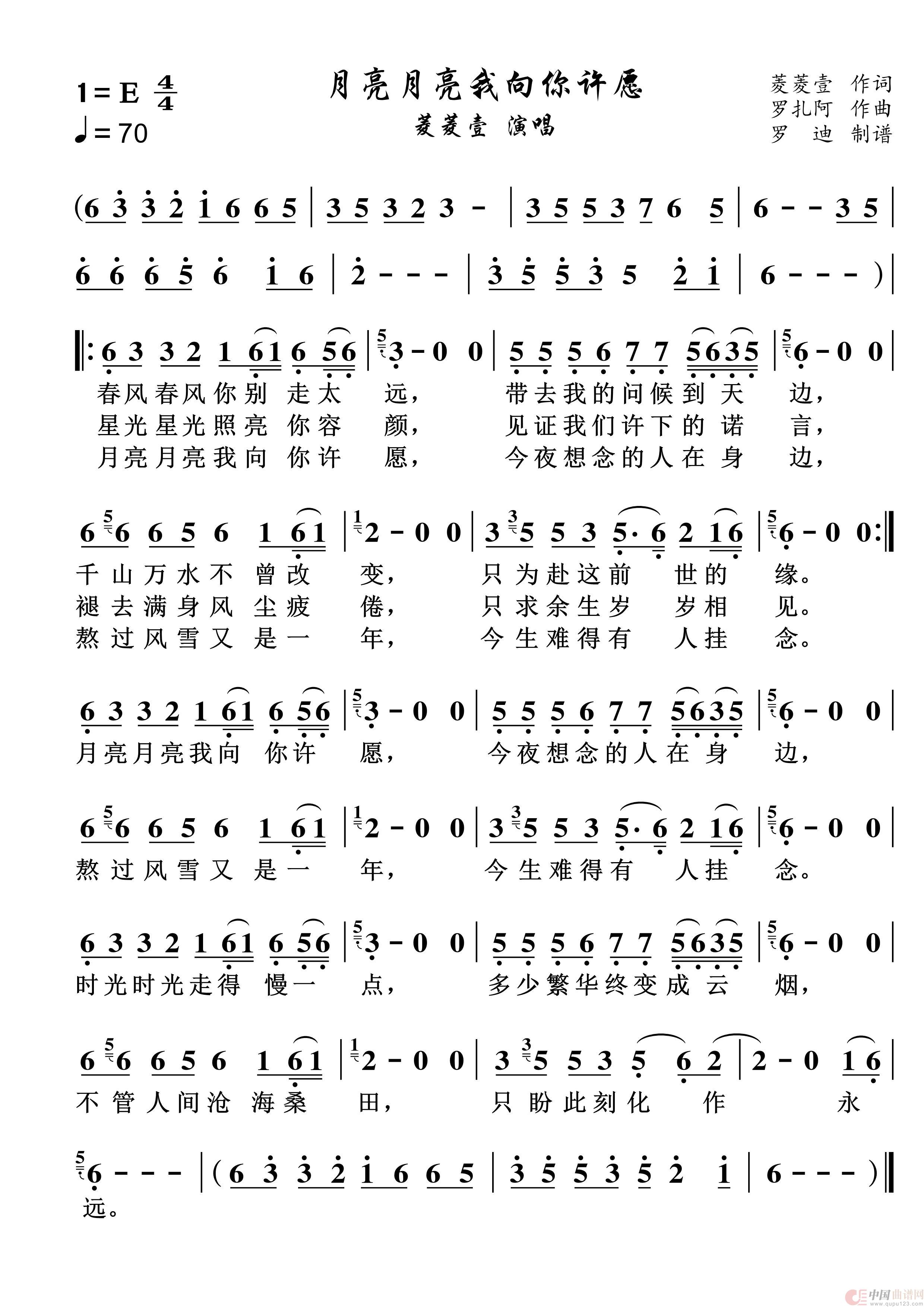 关于《月亮月亮我向你许愿》曲谱的评论