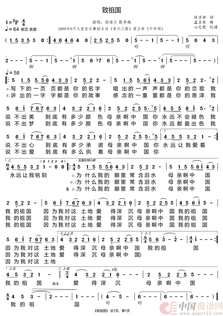 提示:在曲谱图片上单击右键,选择"图片另存为..."即可将曲谱保存到您的电脑中,打印时候可将图片插入到WORD中,调整合适大小打印即可。